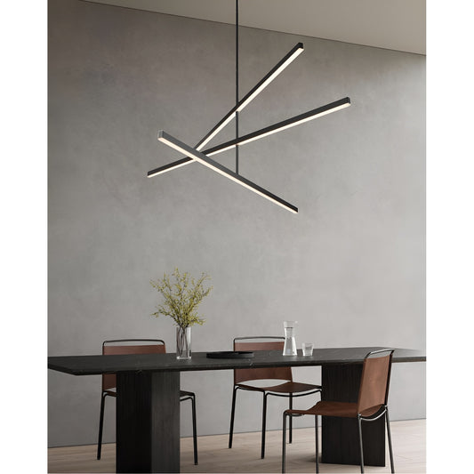 Matte Black LED Chandelier Minimalist Three Linear LEDs Integrated Adjustable Light