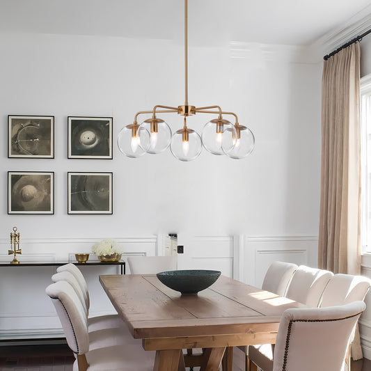 Mid-Century Glass Globe Bubble Round Chandelier, Futuristic Gold Light (five light)