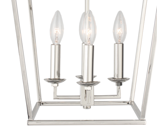 Medieval Lantern Geometric Pendant - Silver Finish, Open Frame Design, Adjustable Hanging Height, Dimmable, and Compatible with Sloped Ceilings