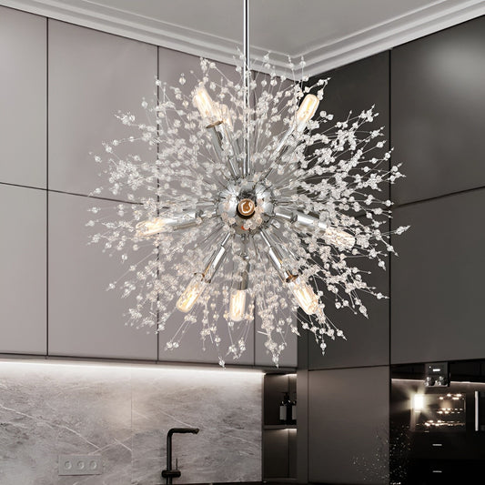 Nine Light Axis Lucite Sputnik Sphere Chandelier, Sci-fi Space Inspired Lighting (Brown)