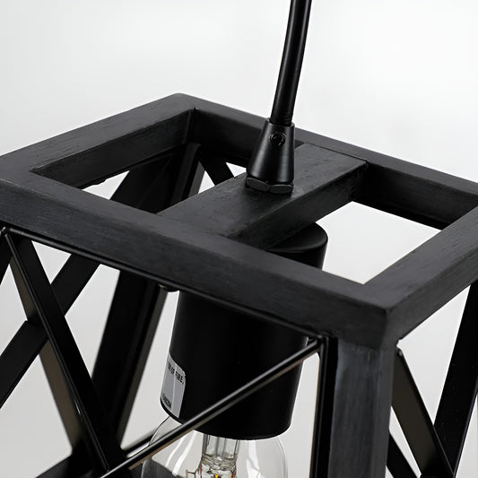 Square Metal Cage Open Frame, Chic and Minimalist Metal Pendant Light