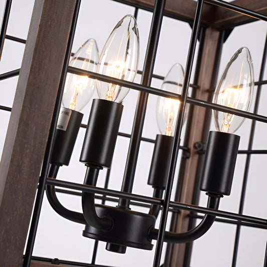 Square/Rectangle Medieval Farmhouse Chandelier with Modern Wood Accents