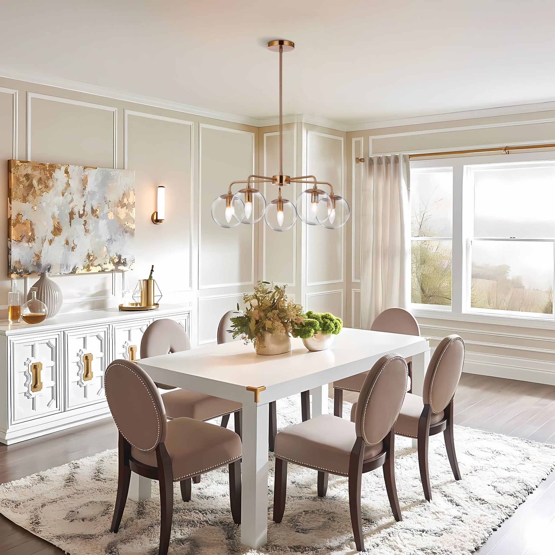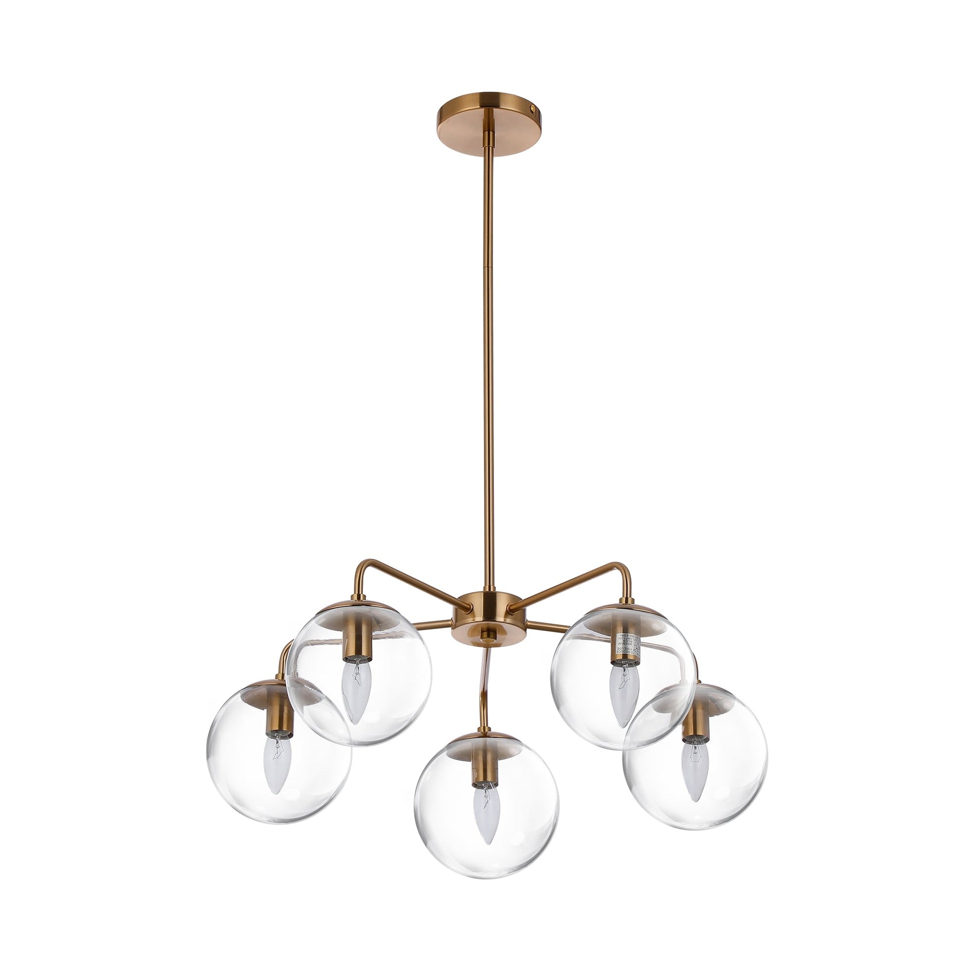 Mid-Century Glass Globe Bubble Round Chandelier, Futuristic Gold Light (five light)