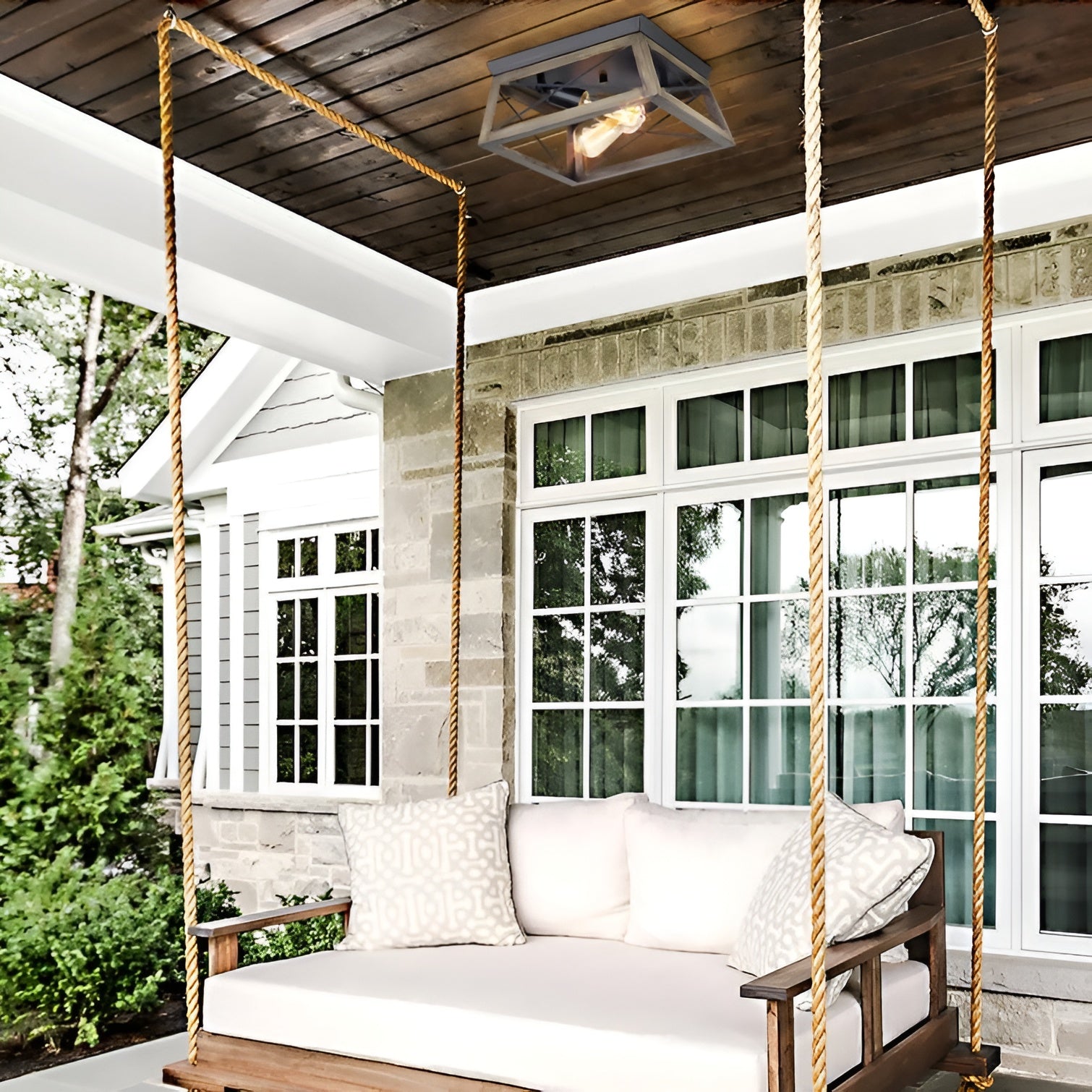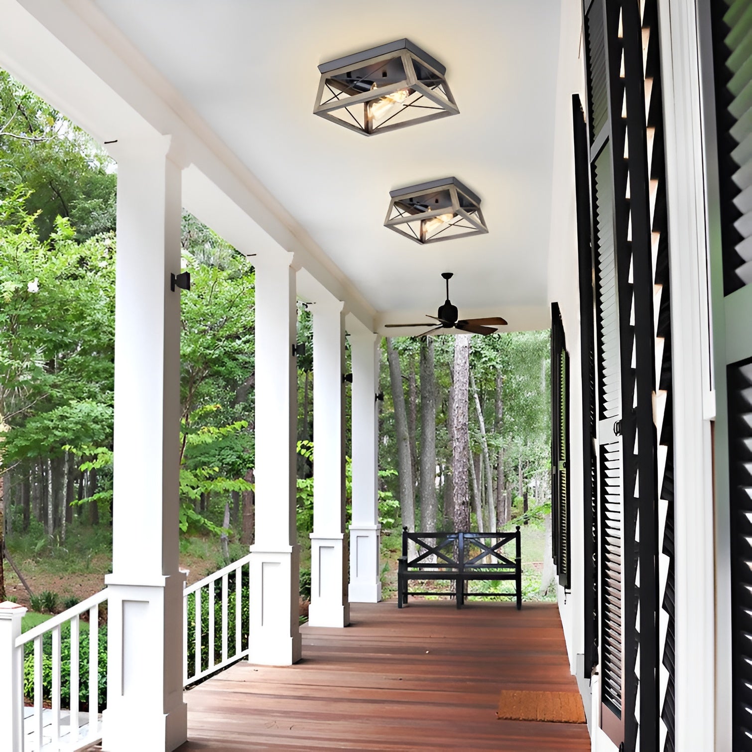 Metal Antique Bronze Flush Mount Light, Wooden Open Frame Design