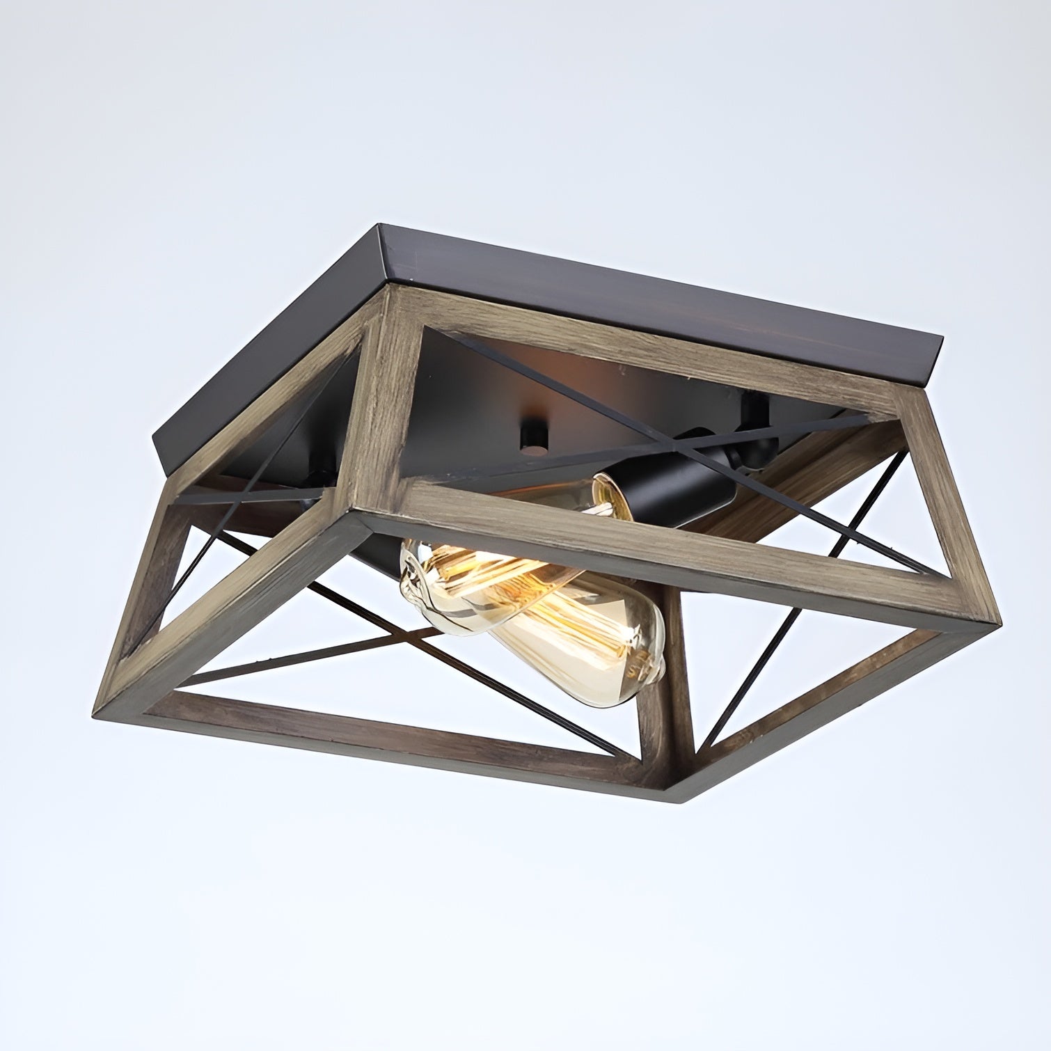 The two-light fixture creates a warm and inviting ambiance, making it an ideal addition to various interior styles. Elevate your home with this exquisite Flush Mount Wood-Look Open Frame Light and enjoy the captivating radiance it brings to your decor.