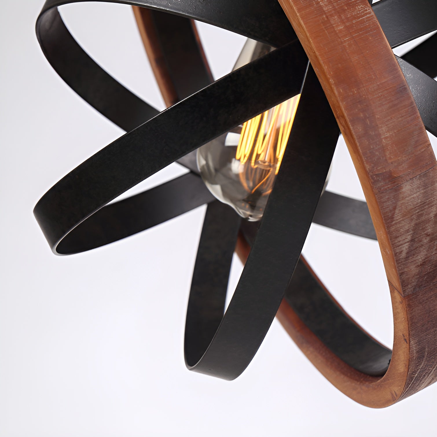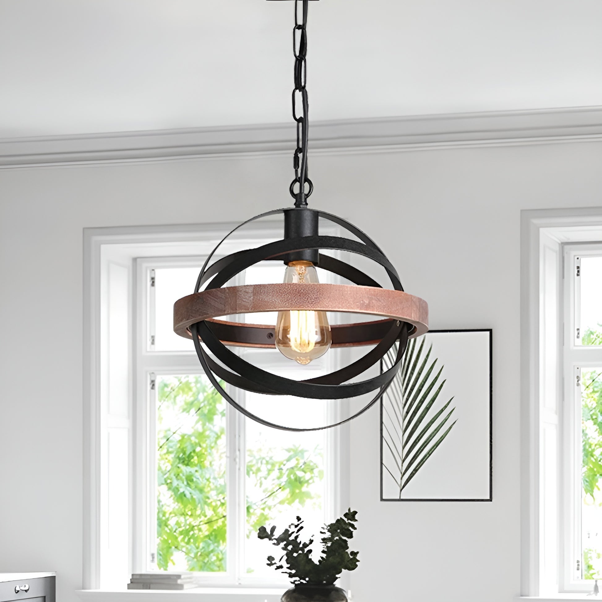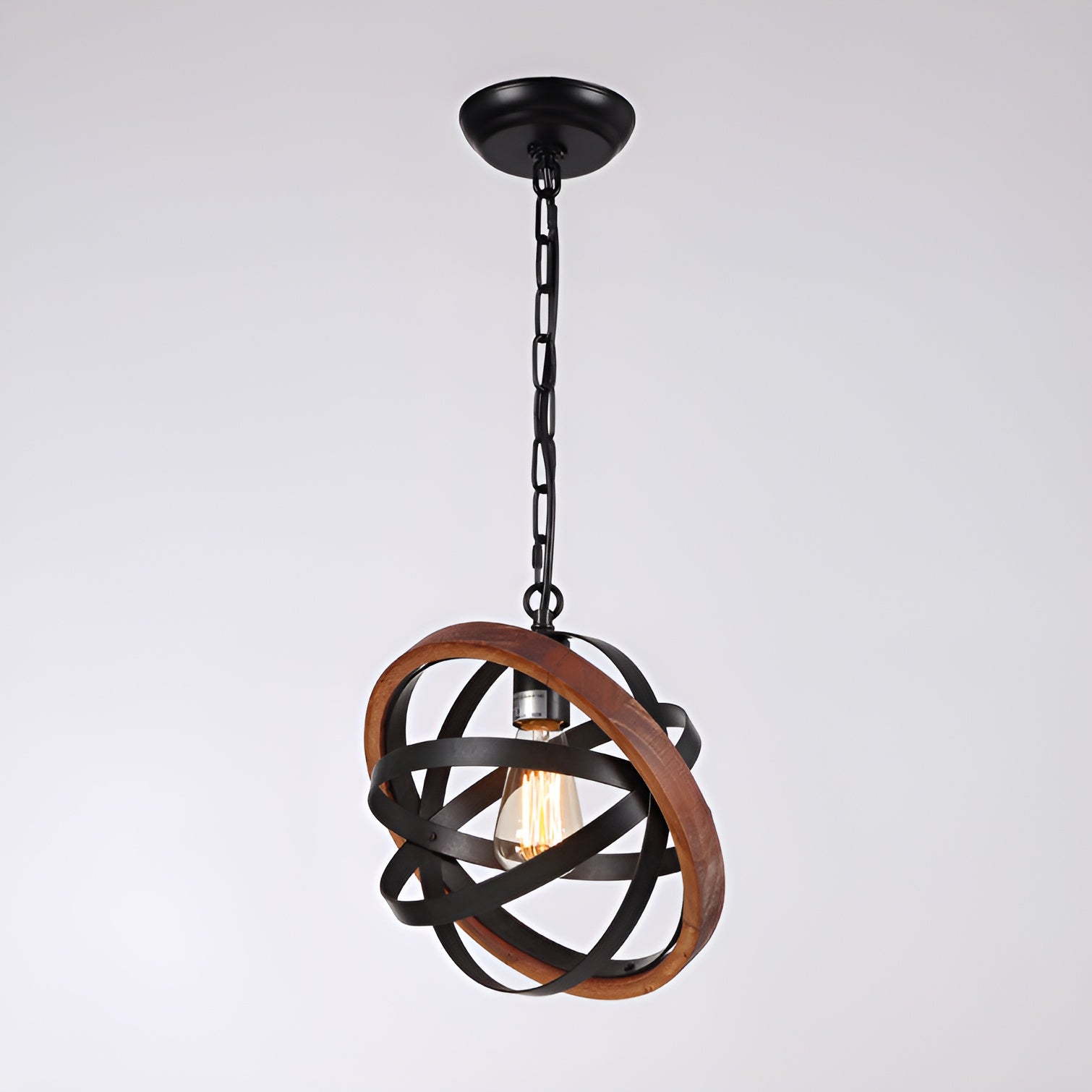 Brown Farmhouse Globe, Mini Hanging Pendant Light - Spherical Wood Style