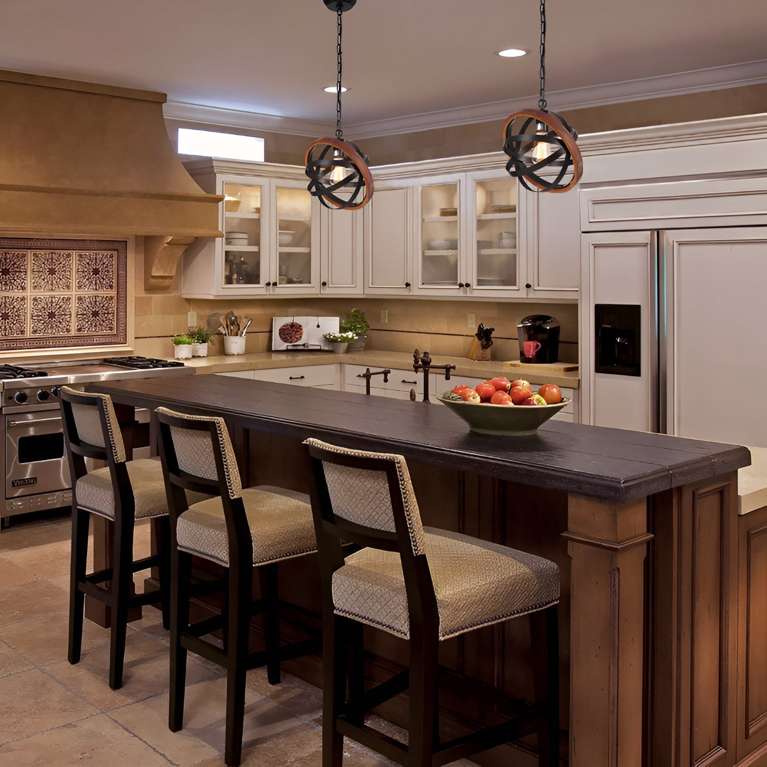 This farmhouse pendant light is a perfect blend of contemporary and rustic design. The globe-shaped lantern is crafted from high-quality metal and wood, which gives it a unique and charming look. The black/brown finish adds a touch of elegance to the overall design. The pendant light is adjustable in height, making it suitable for any room in your home. It’s also dimmable, allowing you to set the perfect ambiance for any occasion. The fixture requires an E26/Medium (Standard) bulb with a maximum wattage of 60 watts. This piece is perfect for a kitchen island, living room and more.