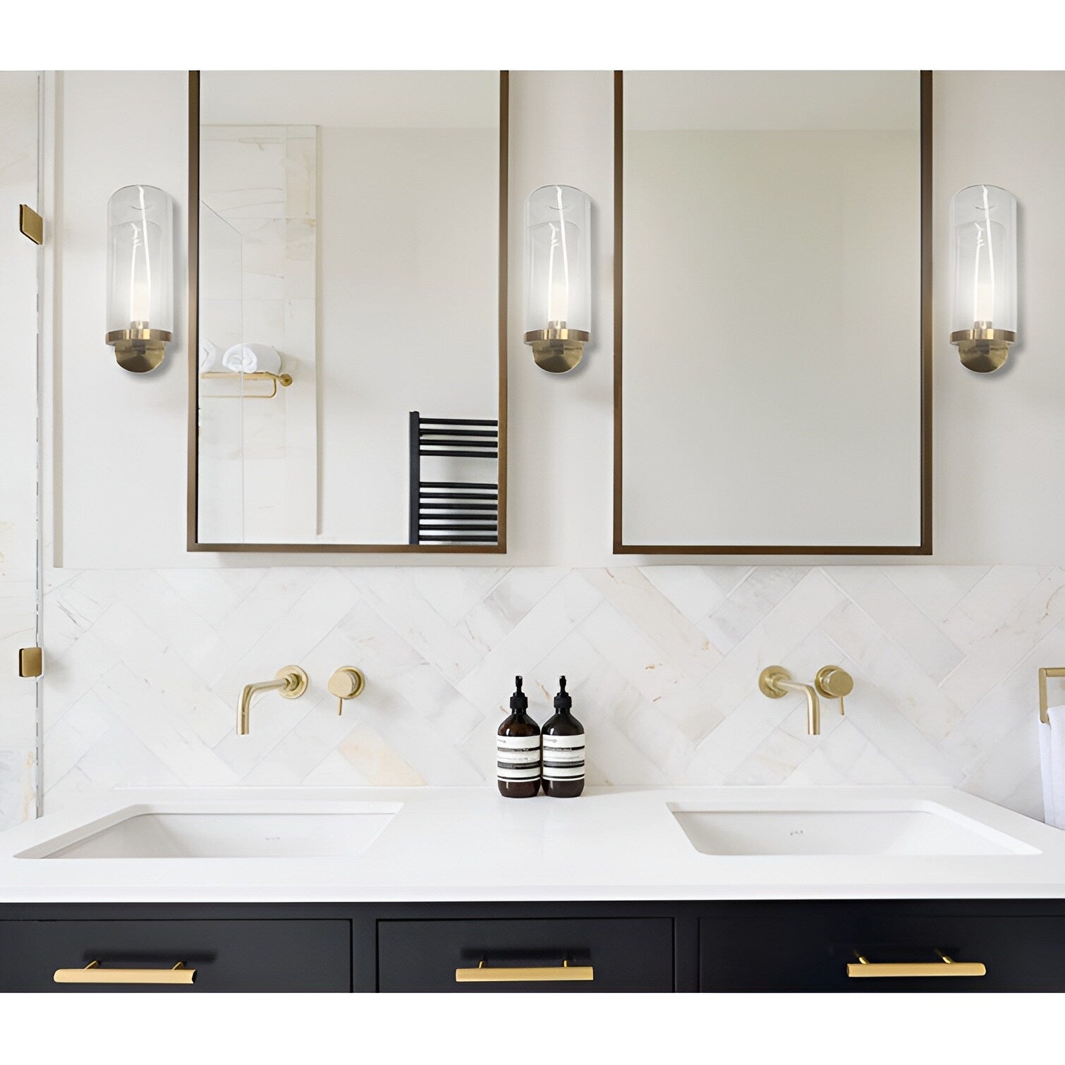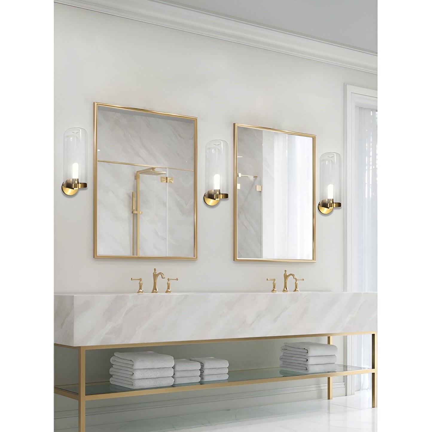 The captivating glass shade adds sophistication and charm, emitting a warm and welcoming glow that transforms any space, from hallways to bedrooms. Meticulously crafted, this wall sconce infuses contemporary brilliance into your decor, creating a sanctuary of style.