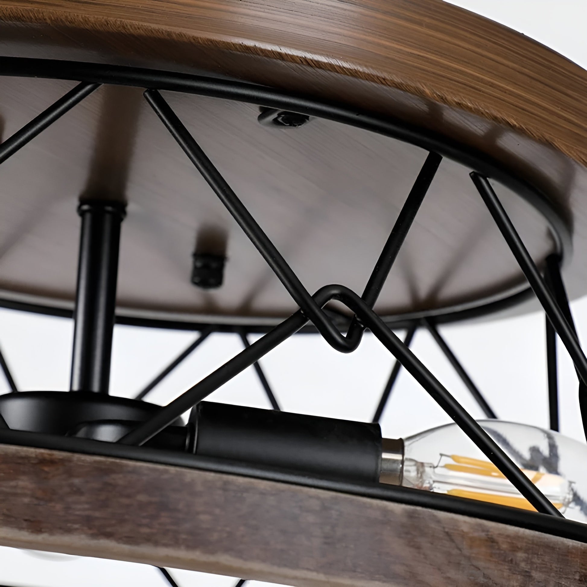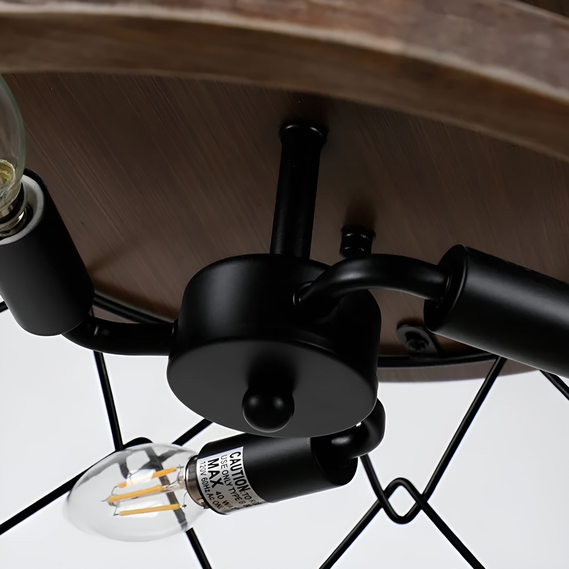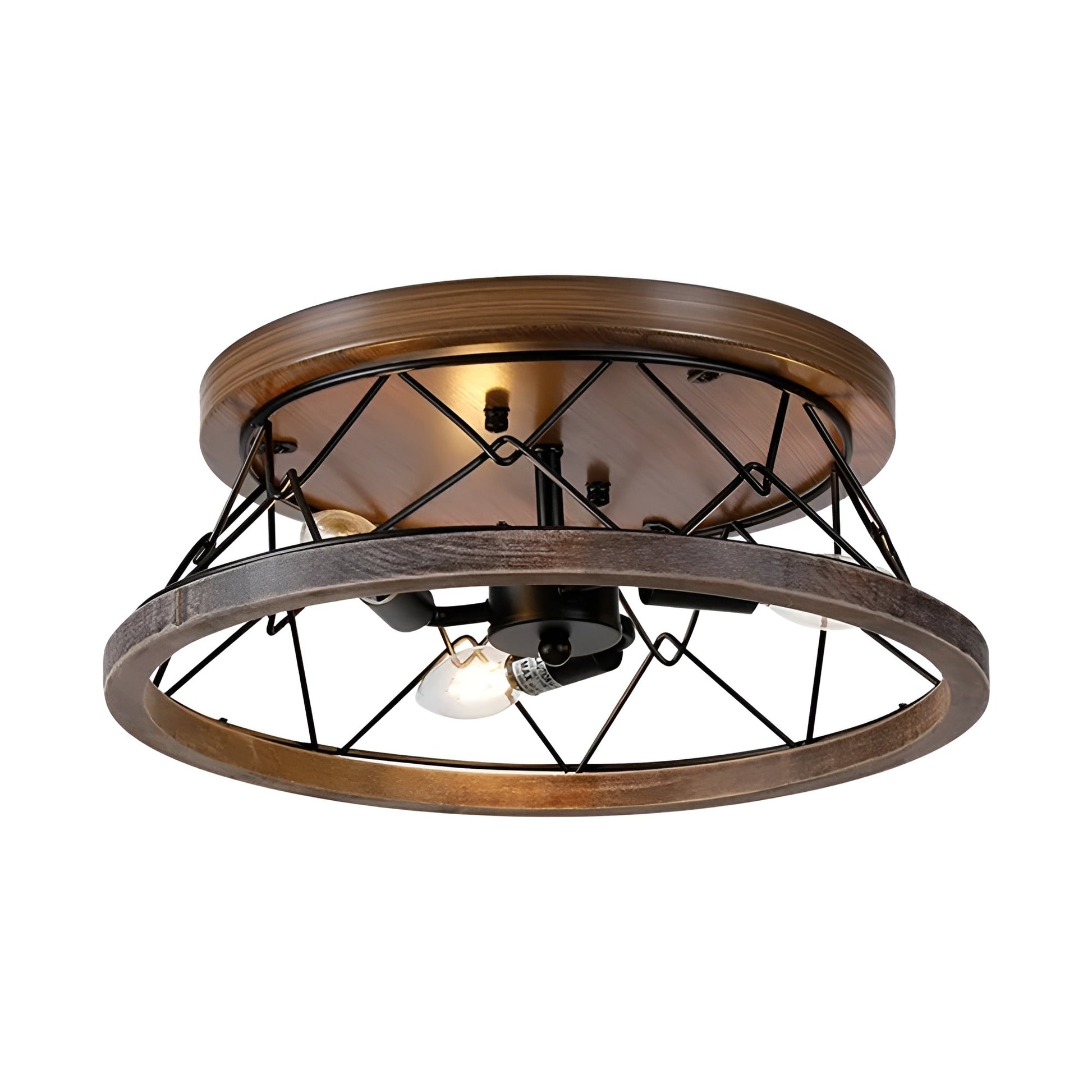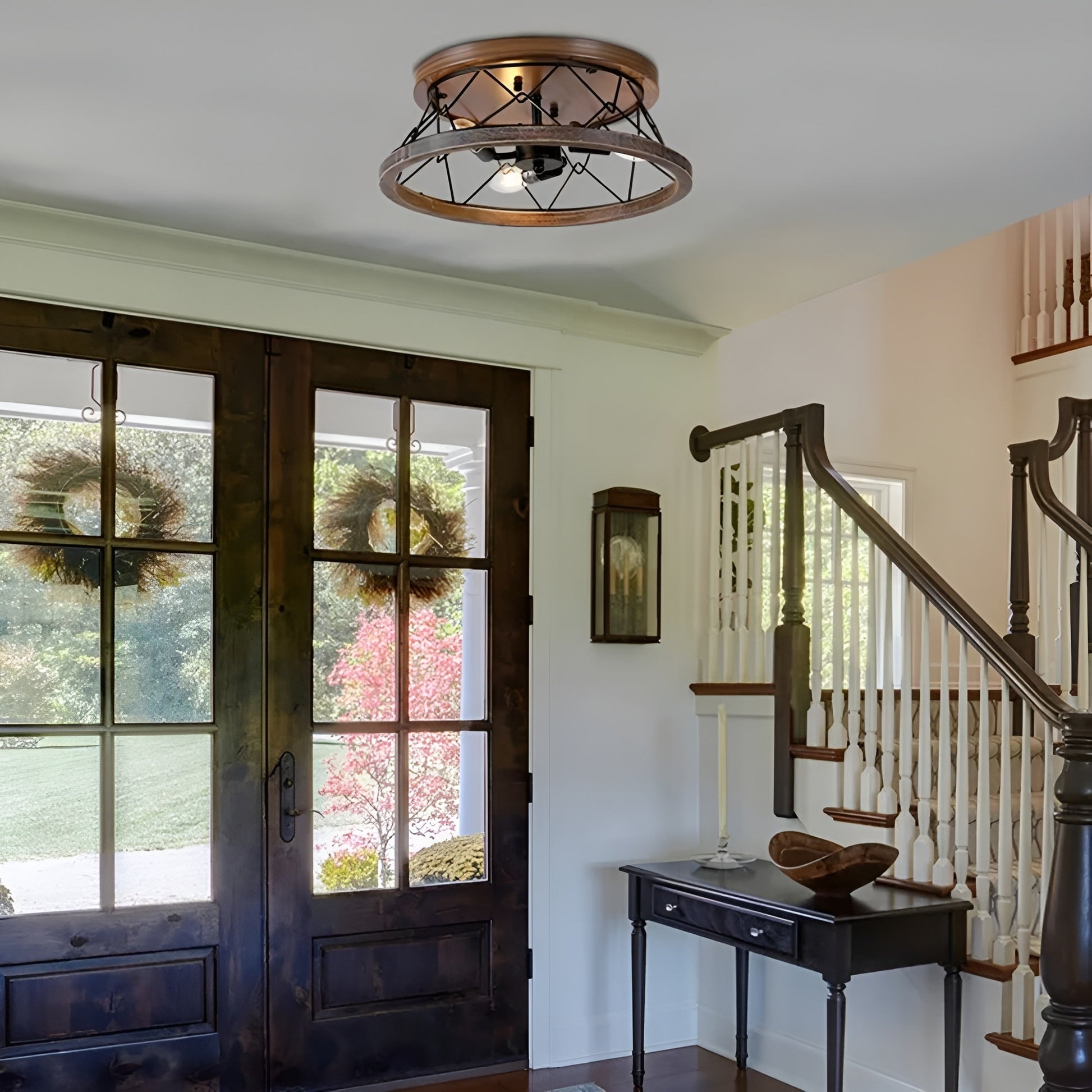 Farmhouse Mesh Basket Chicken Wire Flush Mount Walnut Wood Accent