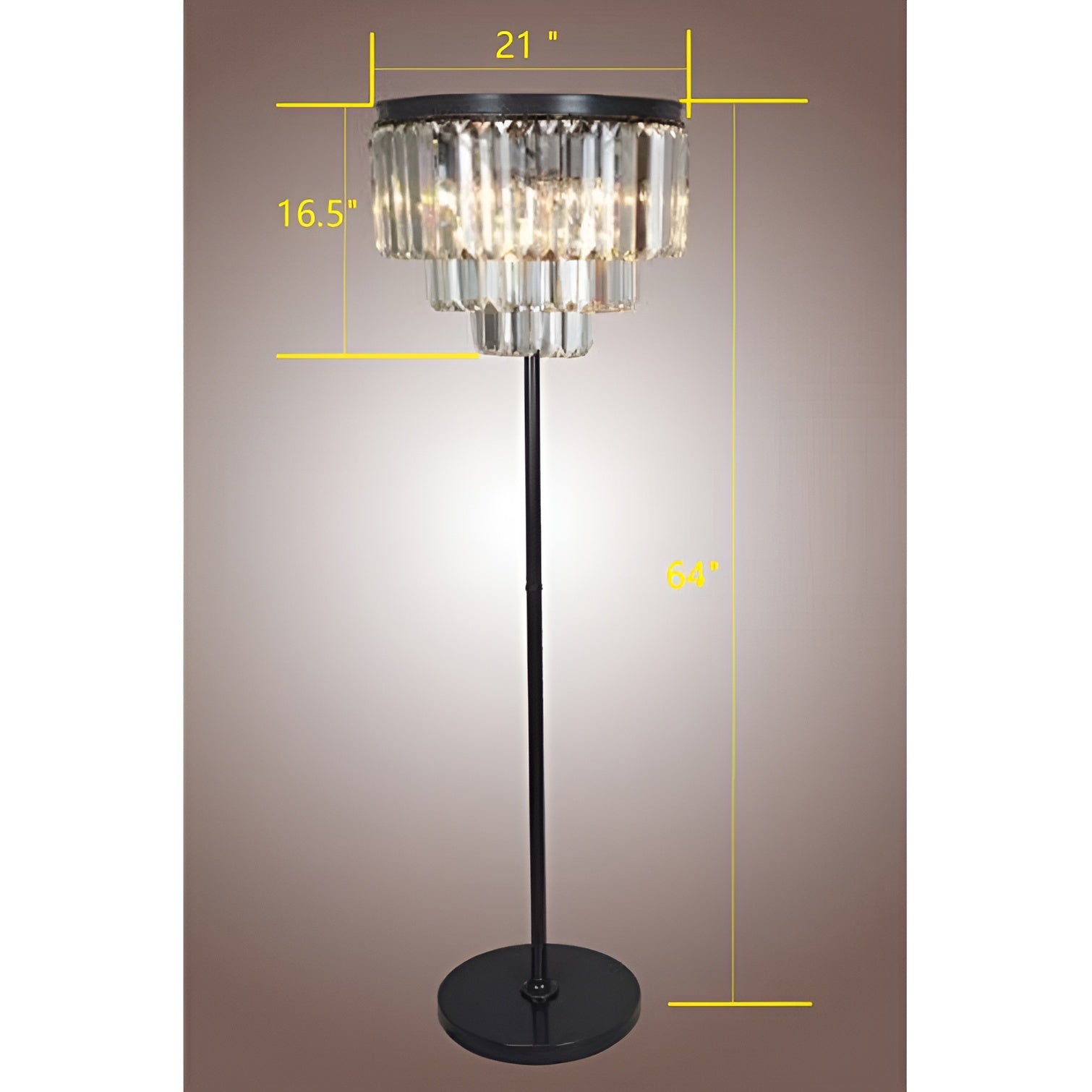 Industrial Crystal Luxury Floor Lamp with a Chandelier Look, Three Tiers Clear Glass