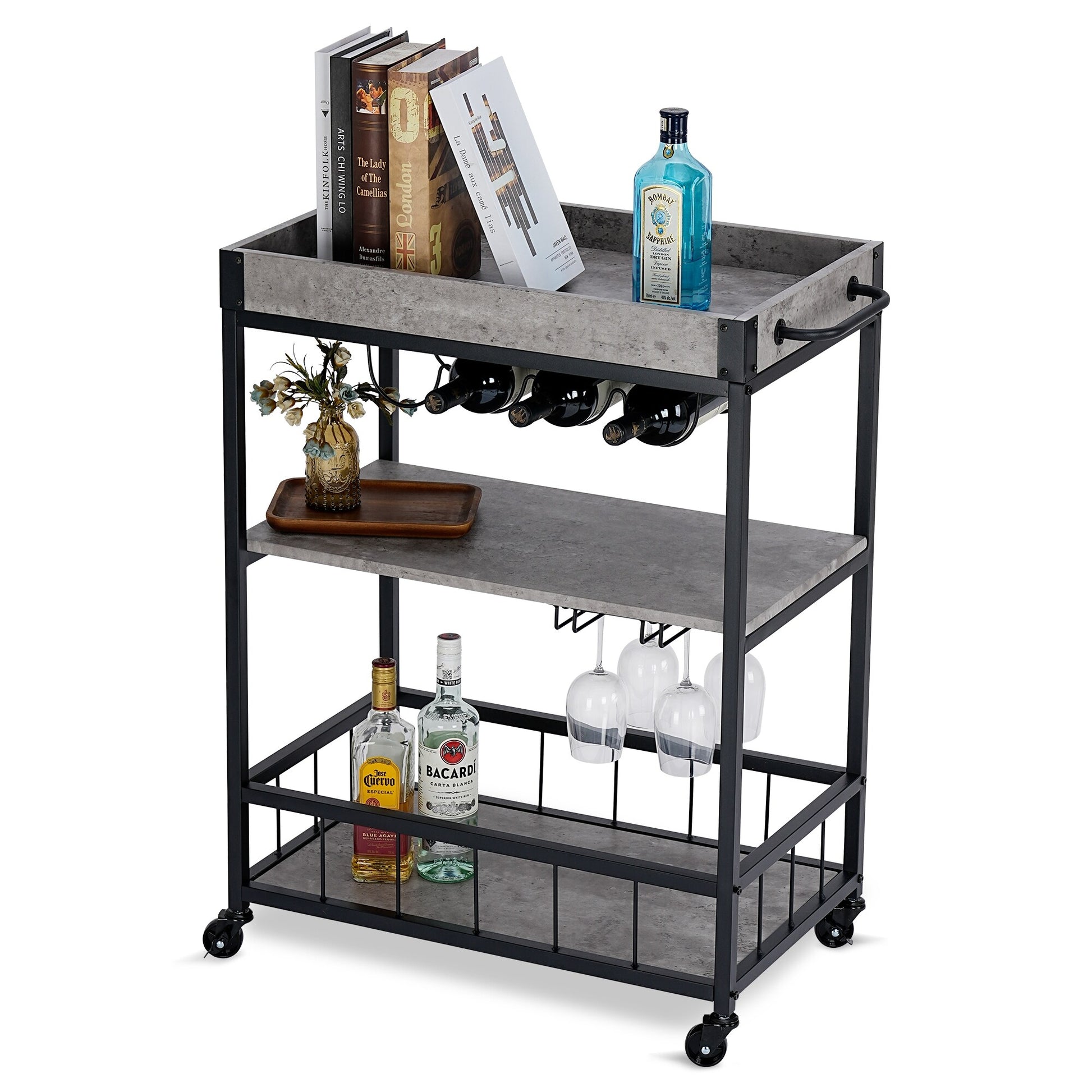 Industrial Kitchen Serving Trolley Cart (Grey) - Vintage Style Rustic Wine Rack & Glass Storage, Tallman Mobile Bar Cart