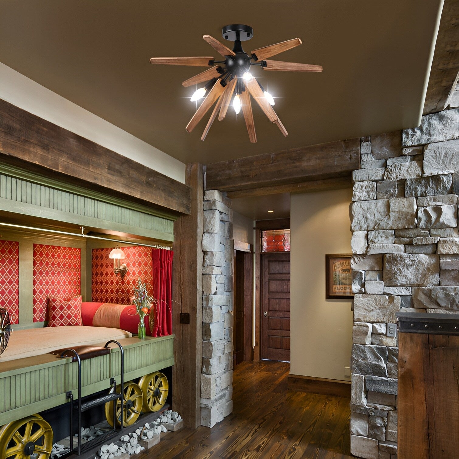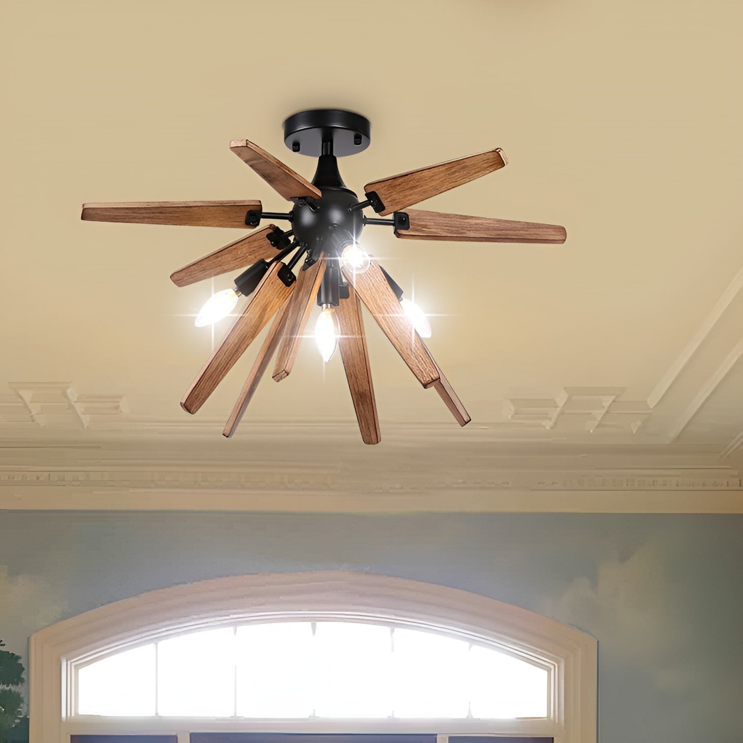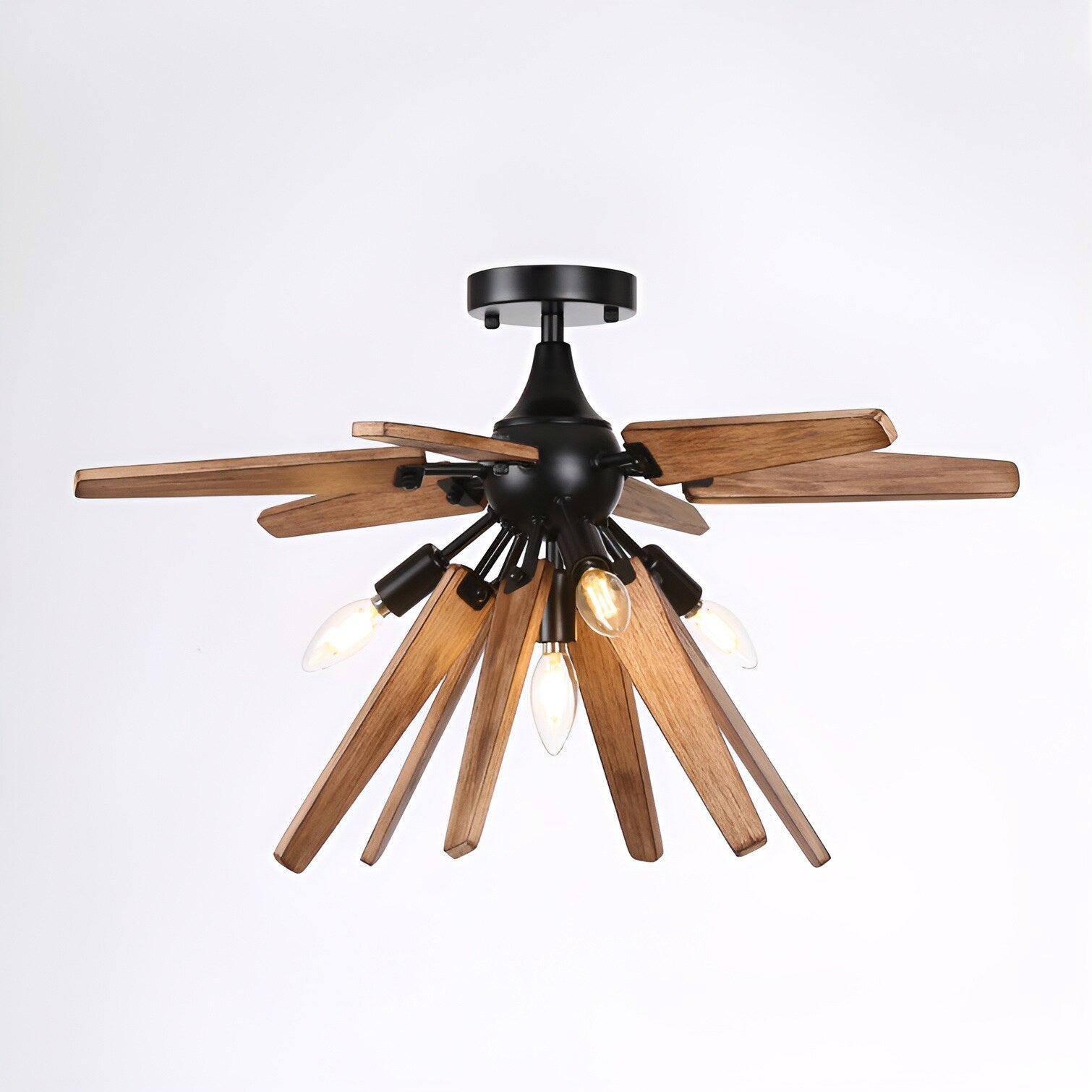 Jaasia 4-Light Sci-fi Sputnik Lamp, Retro Natural Wood Finish (Flush Mount)