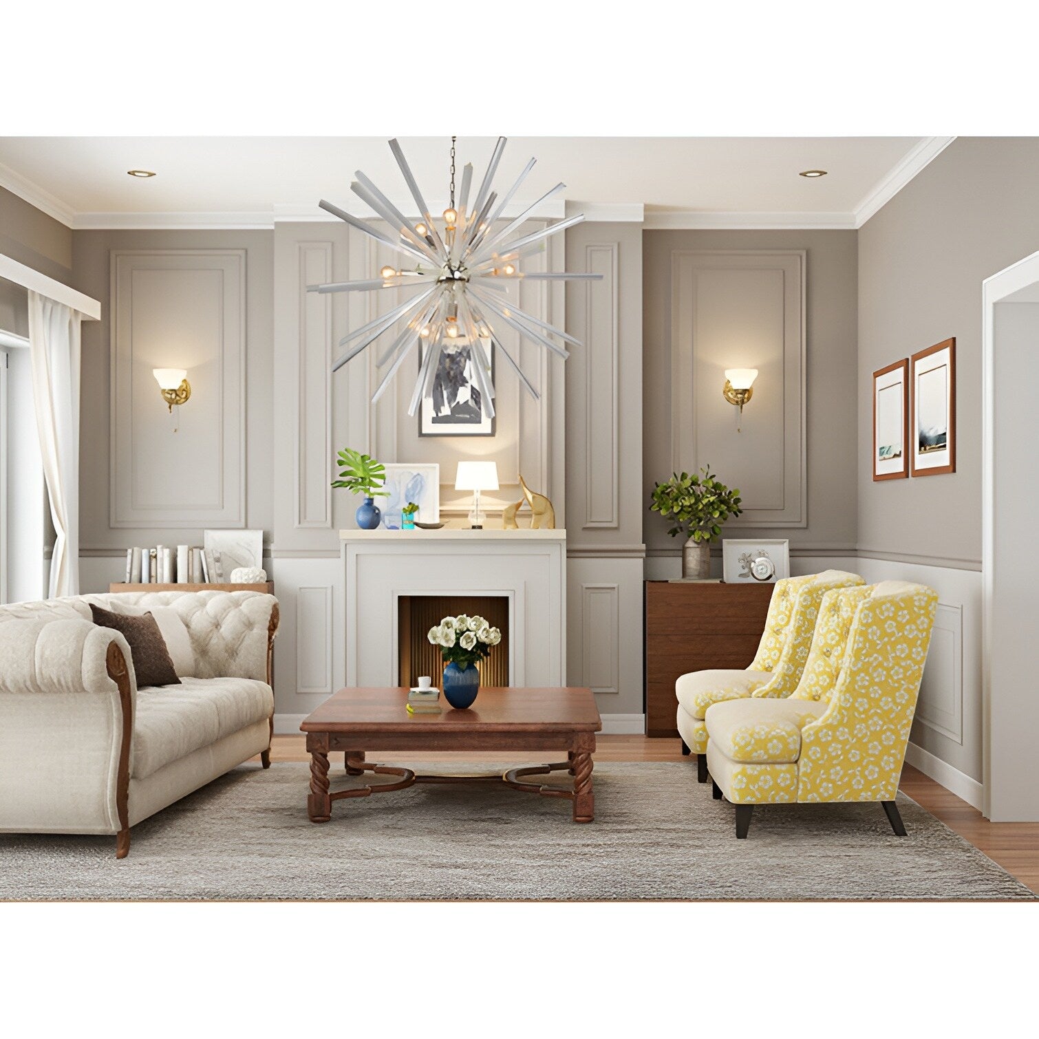 Illuminate your space with the DecoMust Jocelyn 9-Light Sputnik Chandelier, a striking piece that marries modern design and captivating illumination. ✨ This remarkable chandelier showcases a dynamic sputnik-inspired design with nine radiant lights, creating a dazzling centerpiece for any room. Its sleek finish and distinctive design add a touch of sophistication, making it a versatile addition to various interior styles. 🏡 The Jocelyn Chandelier isn't just a lighting fixture; it's a statement piece that transforms your space into a haven of contemporary elegance. Elevate your home with this exquisite chandelier and enjoy the captivating radiance it brings to your decor. 🌟