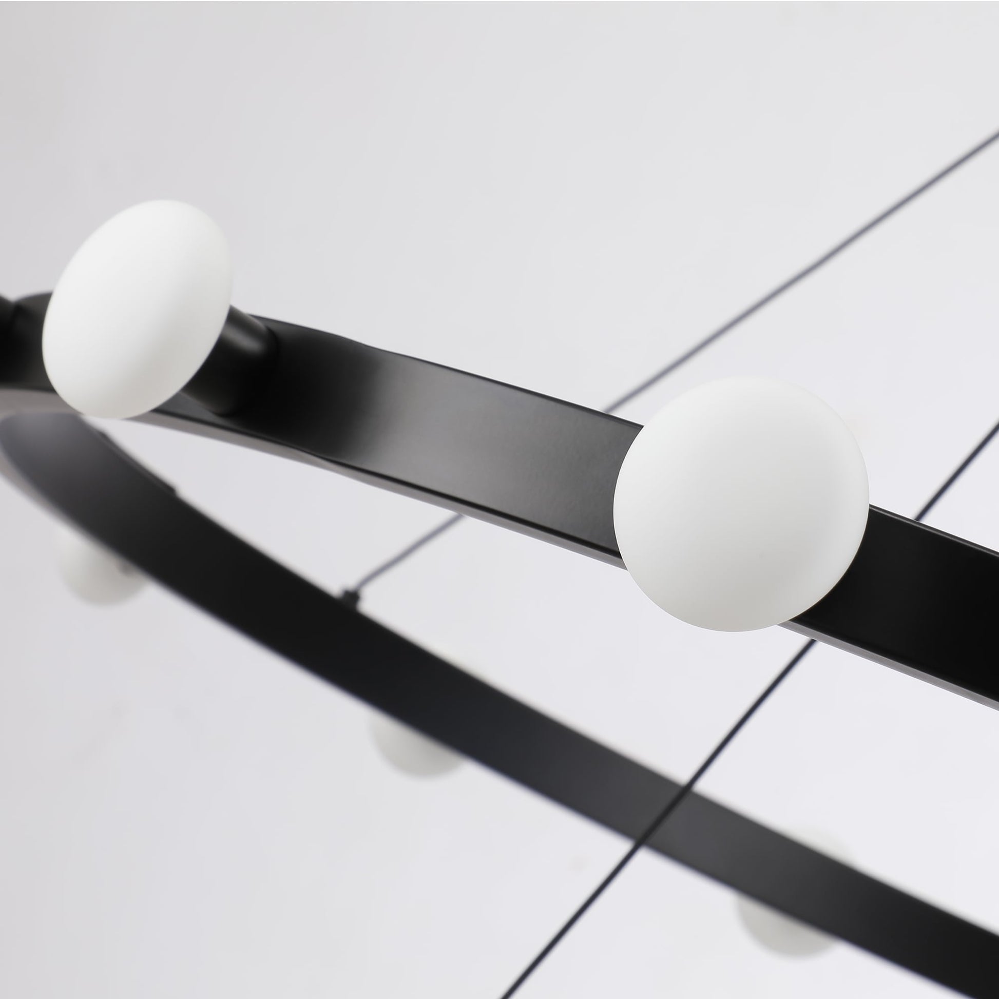 Introducing the Kuzco Lighting Rezz Collection by DecoMust, a statement piece that seamlessly blends old Hollywood glamour with modern minimalism. With a sleek black finish, this 90W LED Chandelier stands tall at 38.5 inches and spans 35.5 inches wide.