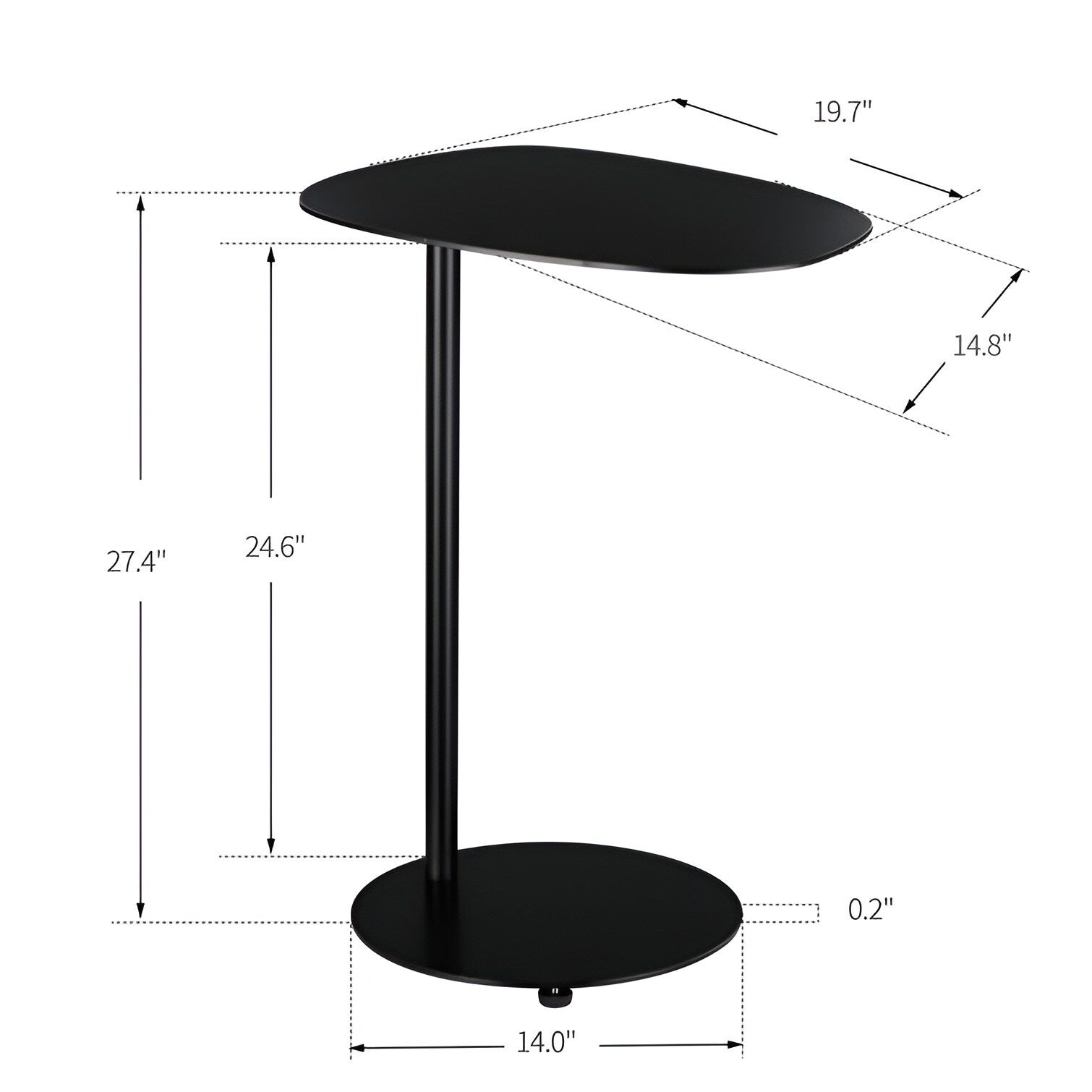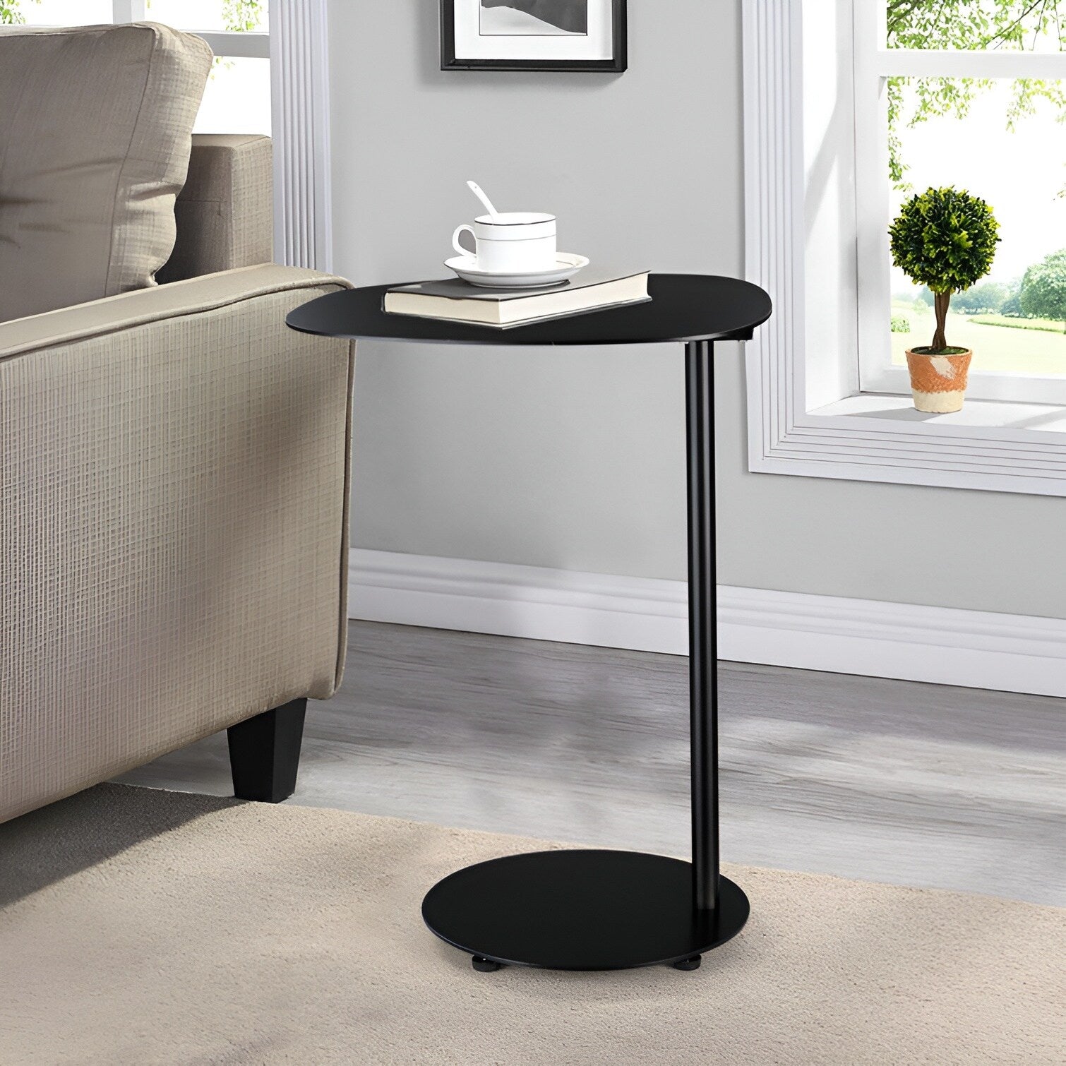 With its C table design, this side table can be conveniently slid under a sofa or couch, optimizing space usage. The spacious tabletop provides a practical storage solution for your newspapers, magazines, or books, ensuring both style and functionality in one elegant piece.