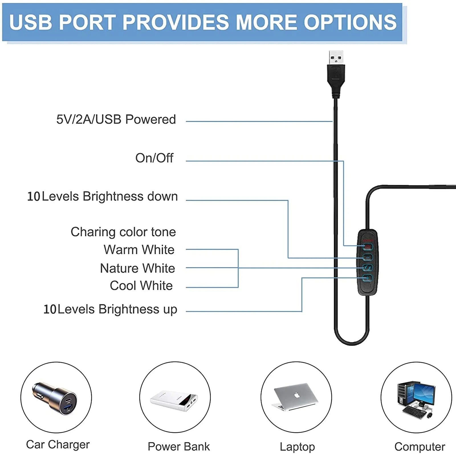 Energy-Efficient: Consuming 80% less energy than traditional bulbs, the LED lamp is an eco-friendly choice. It operates via USB (DC5V / 2A) and comes with a 2-meter-long cable for convenient power access from laptops, power banks, or adapters.