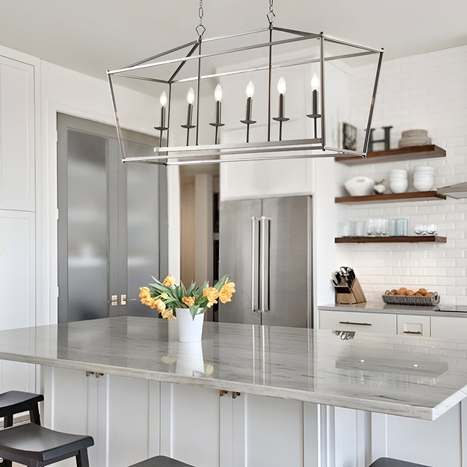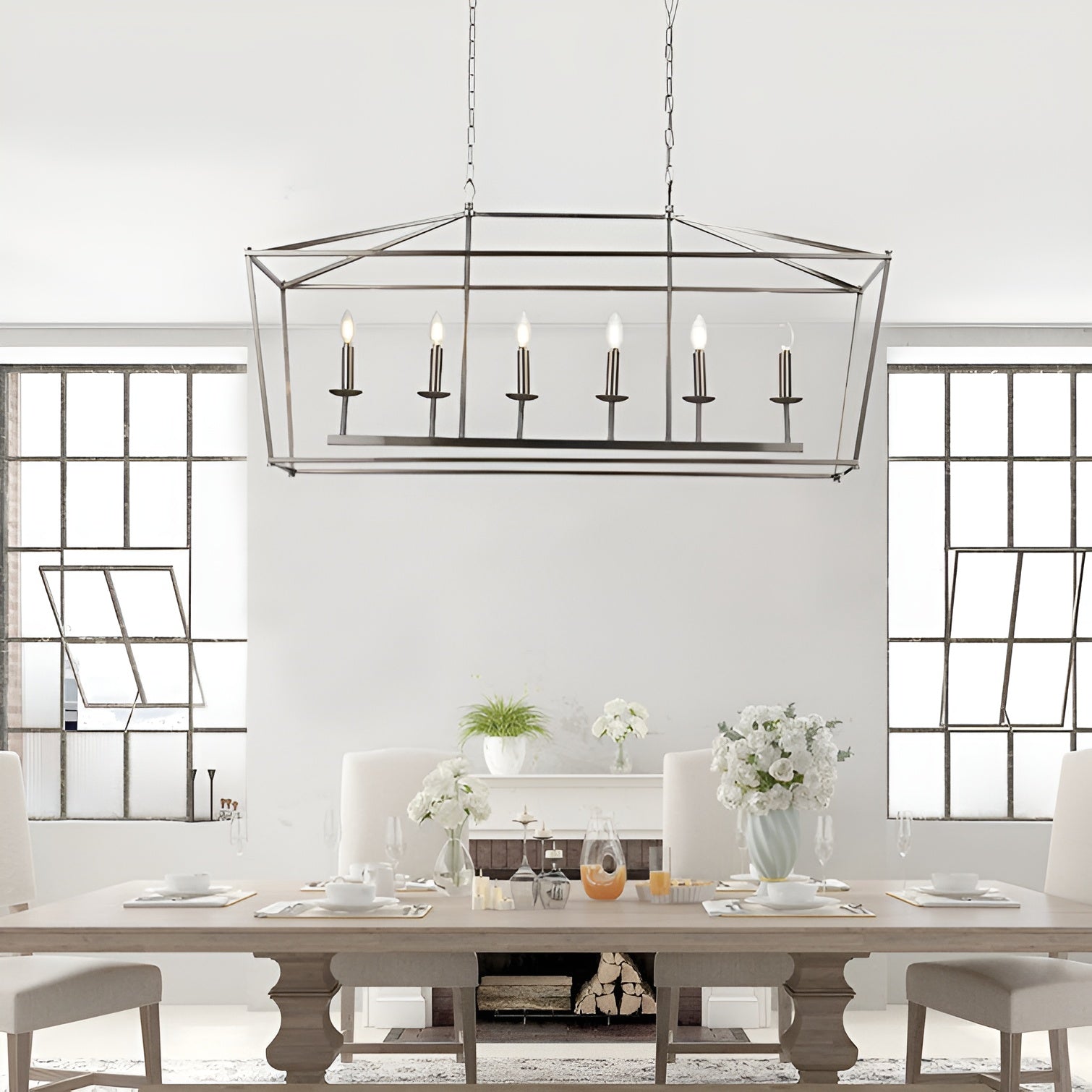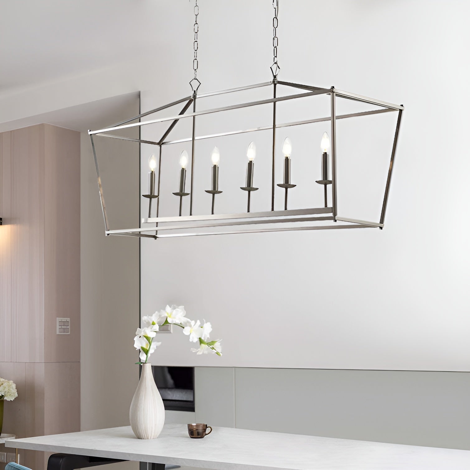 Minimalist Linear Rectangle Chandelier/Lantern for Kitchen Island