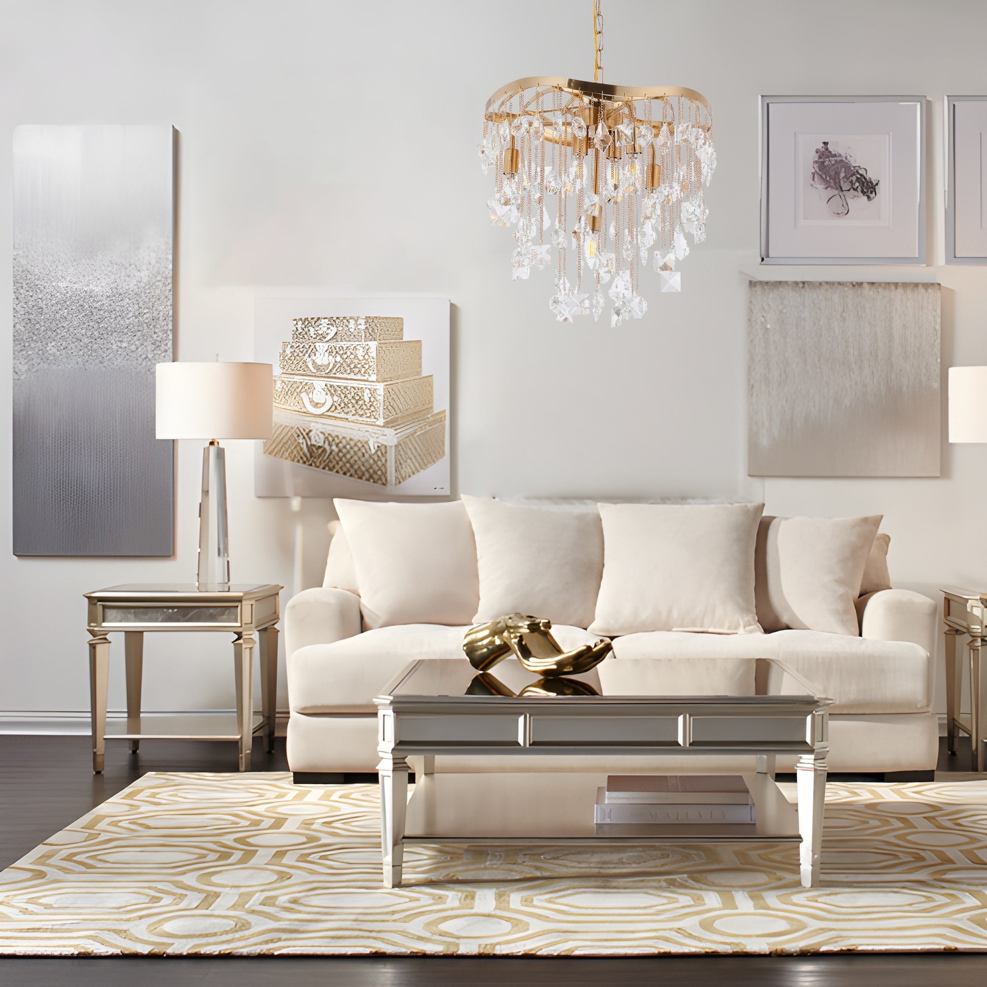 Immerse yourself in the glow of luxury with our Modern Glam Tiered Crystal Chandelier. Make a statement in your living room, dining area, or foyer, and let the shimmering crystals create a captivating spectacle.