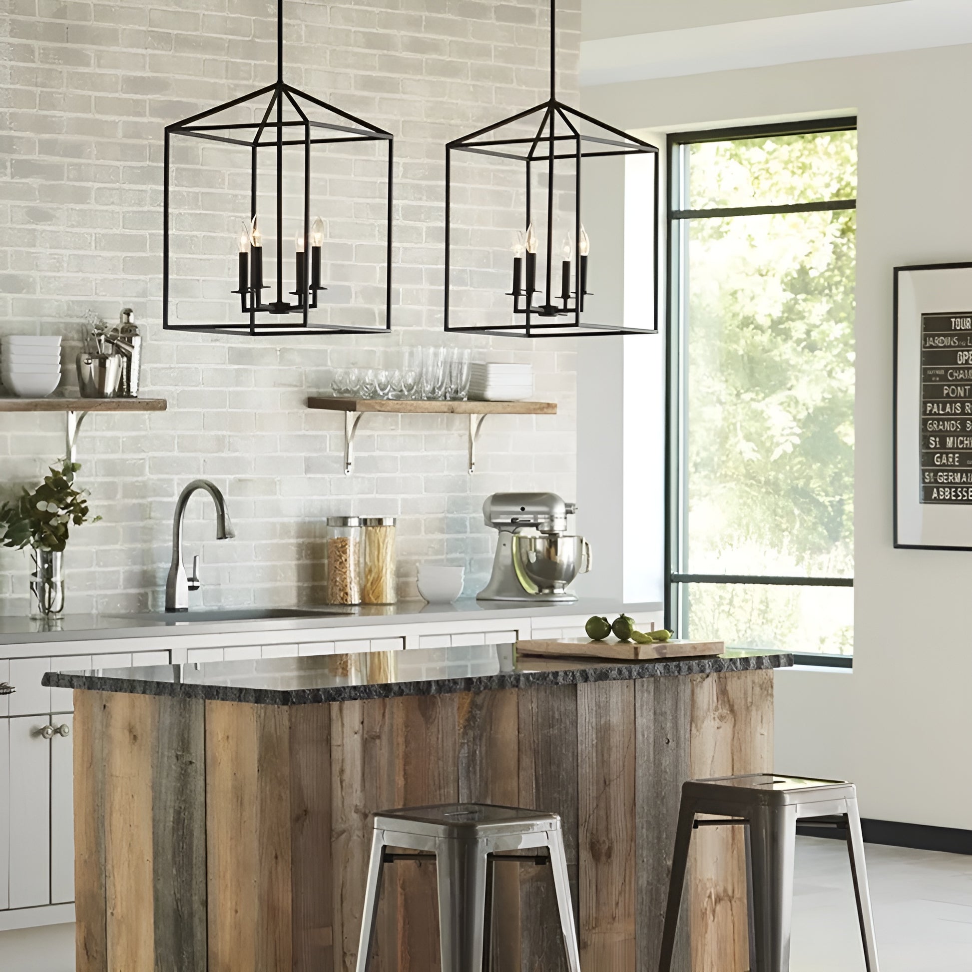 Modern Lantern Square / Rectangle Pendant Light - Open Cage Medieval Candle Lights Frame