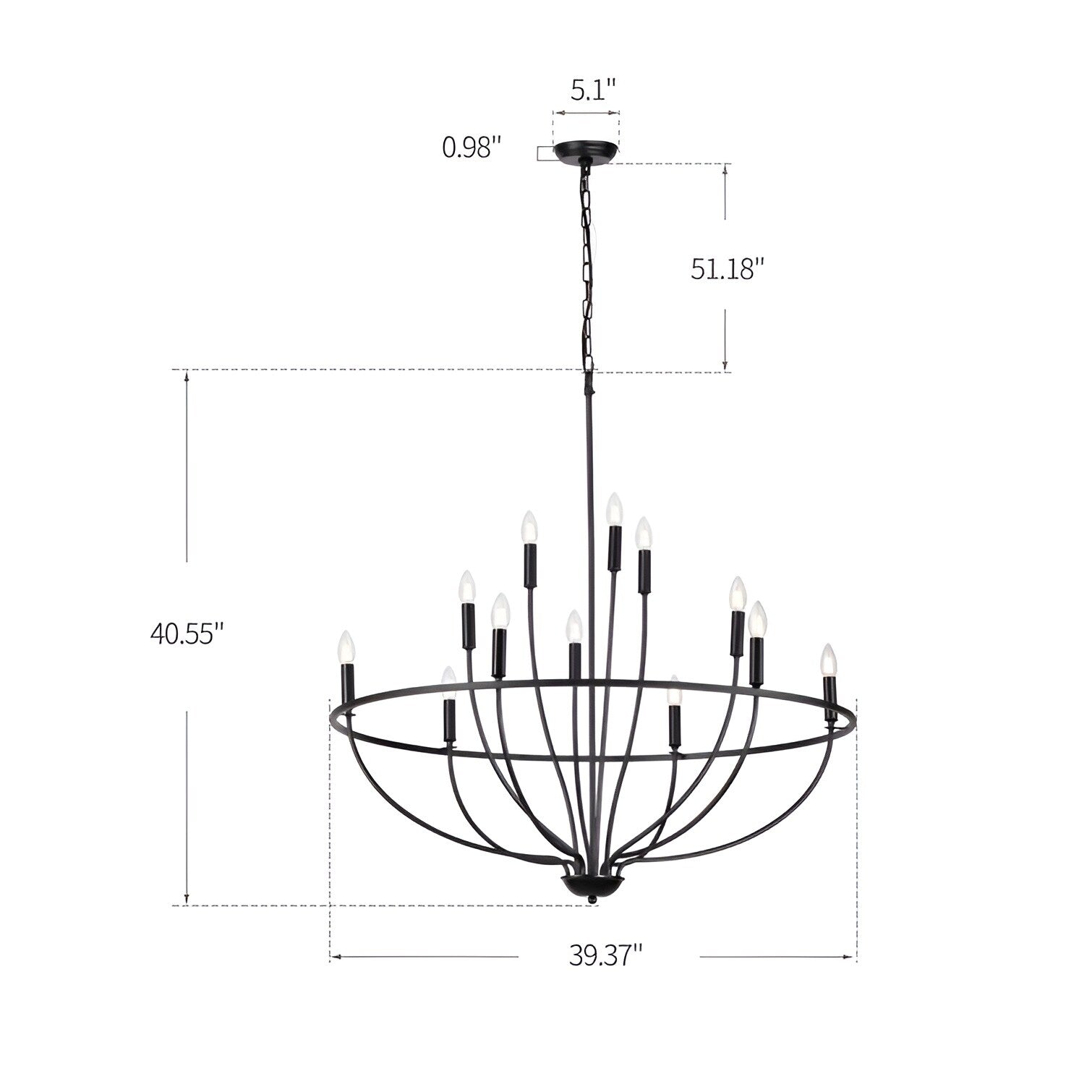 Orono 12-Light Metal Black Chandelier - Graceful Curve Candlestick Ceiling Light