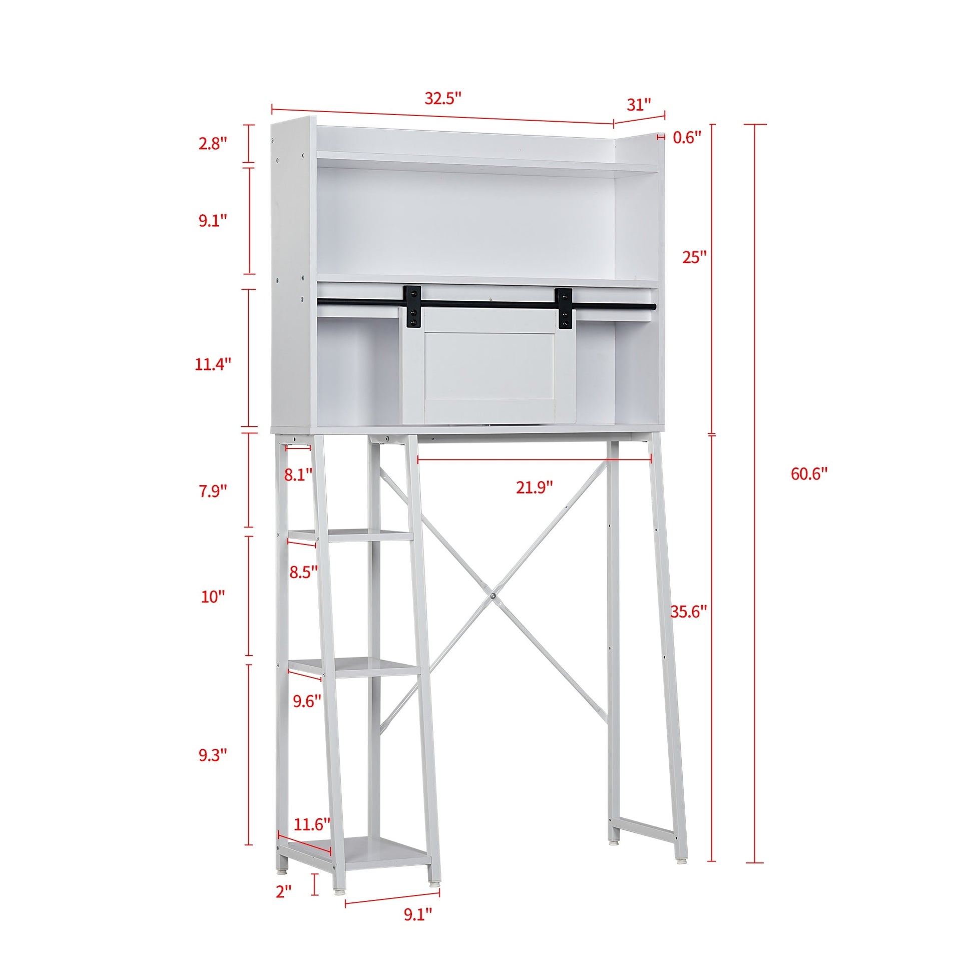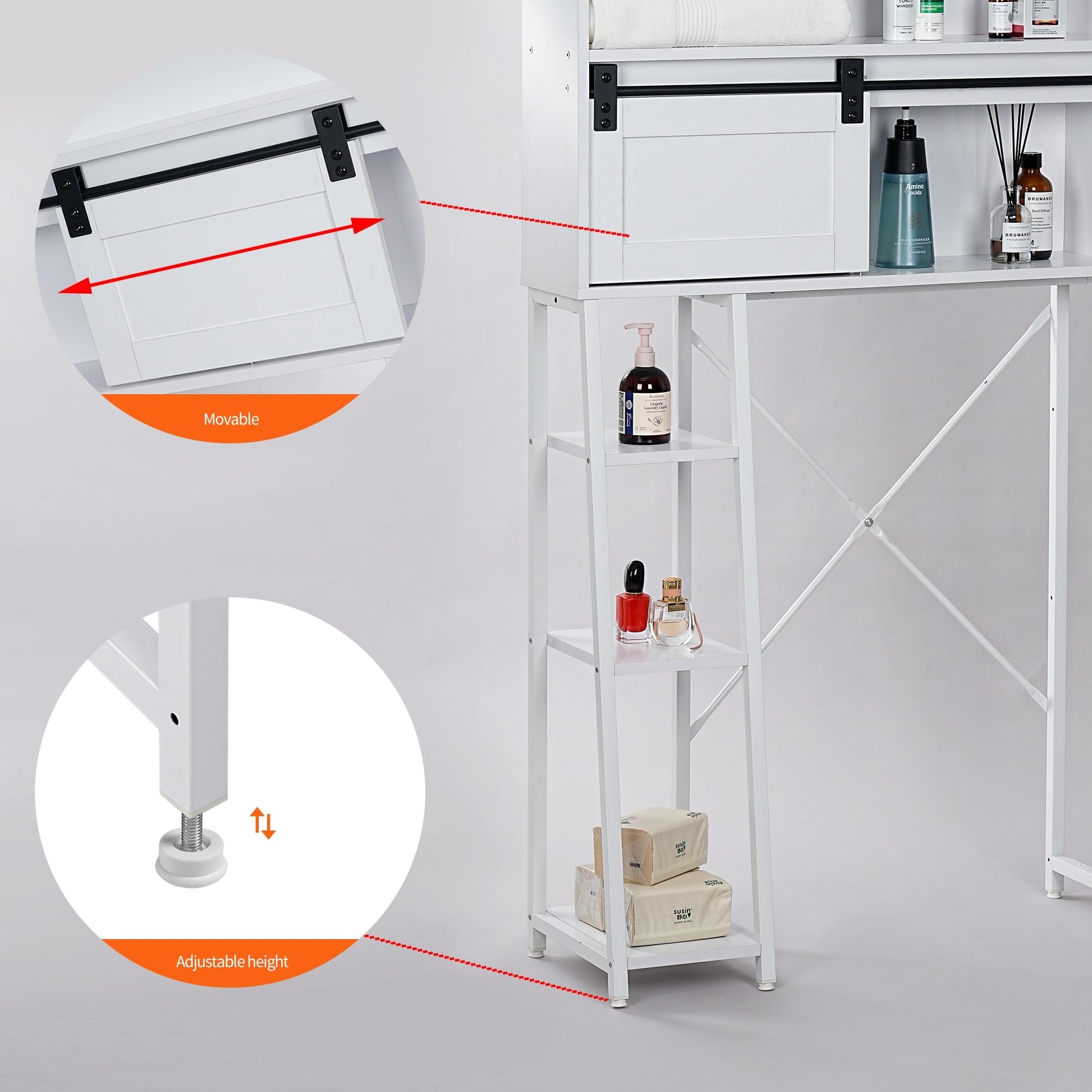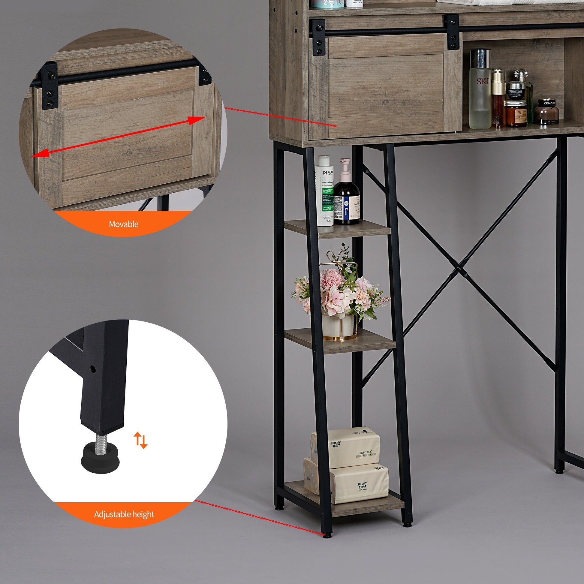 Over The Toilet Storage Cabinet - Elegant Grey Bathroom Organizer with Sliding Barn Door