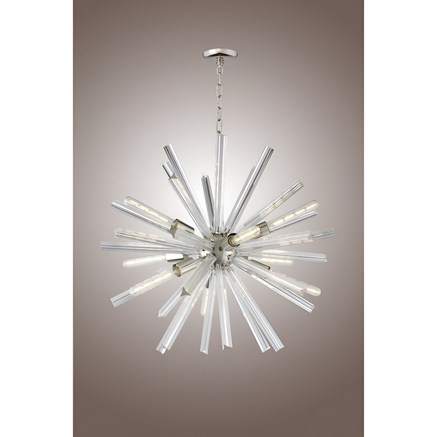 Elevate your home ambiance to new heights with the enchanting DecoMust Jocelyn 9-Light Axis Lucite Sputnik Sphere Chandelier – a masterpiece of modern design seamlessly woven with the allure of nature. Carefully crafted with precision, this chandelier boasts a spherical silhouette adorned with axis lucite accents, creating a stunning fusion of organic and contemporary aesthetics. The nine lights emit a warm and inviting glow, reminiscent of the gentle sunlight filtering through leaves, adding a cozy touch to your space.