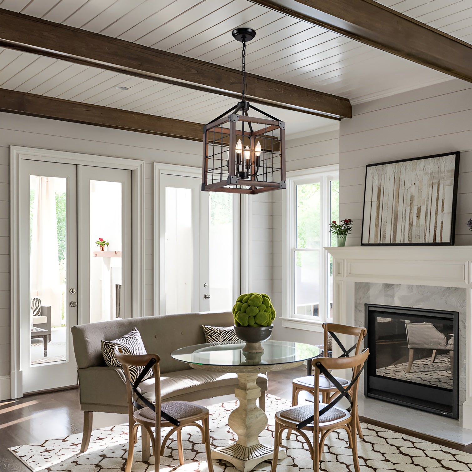 Square/Rectangle Medieval Farmhouse Chandelier with Modern Wood Accents