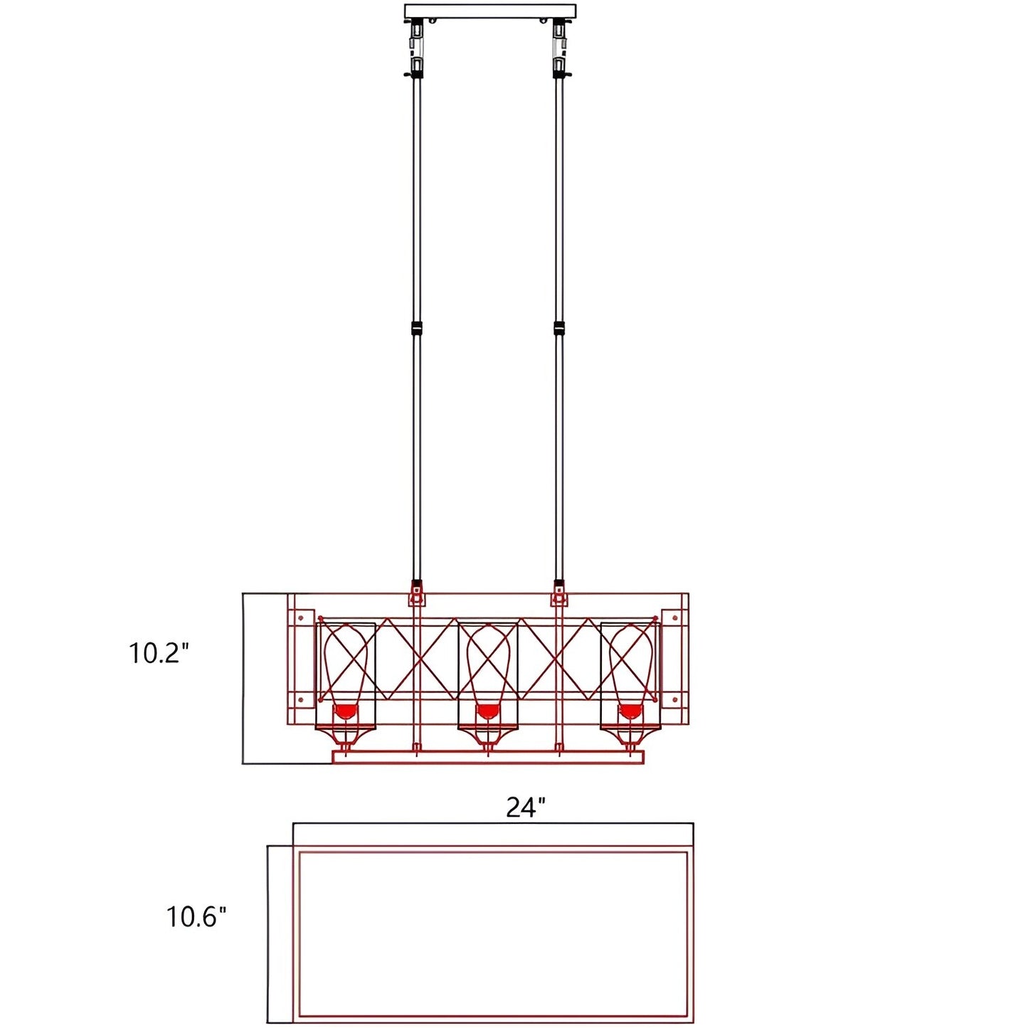 Rainhard 3-Light Rectangle Kitchen Island Pendant, Rustic Industrial Farmhouse Style