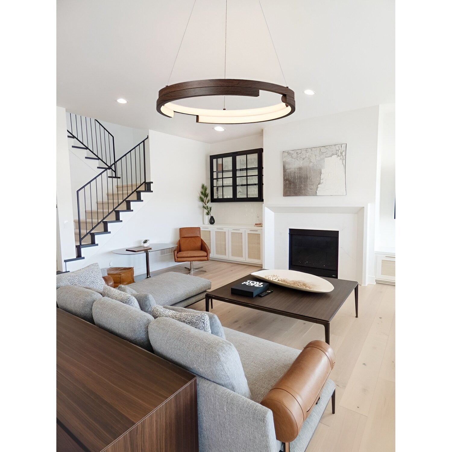 Experience sophistication with our Premium Walnut Integrated LED Ring Chandelier. This height-adjustable, contemporary lighting solution combines style and functionality seamlessly. Illuminate your space with energy-efficient LED technology and enjoy the modern design that adapts to your needs.