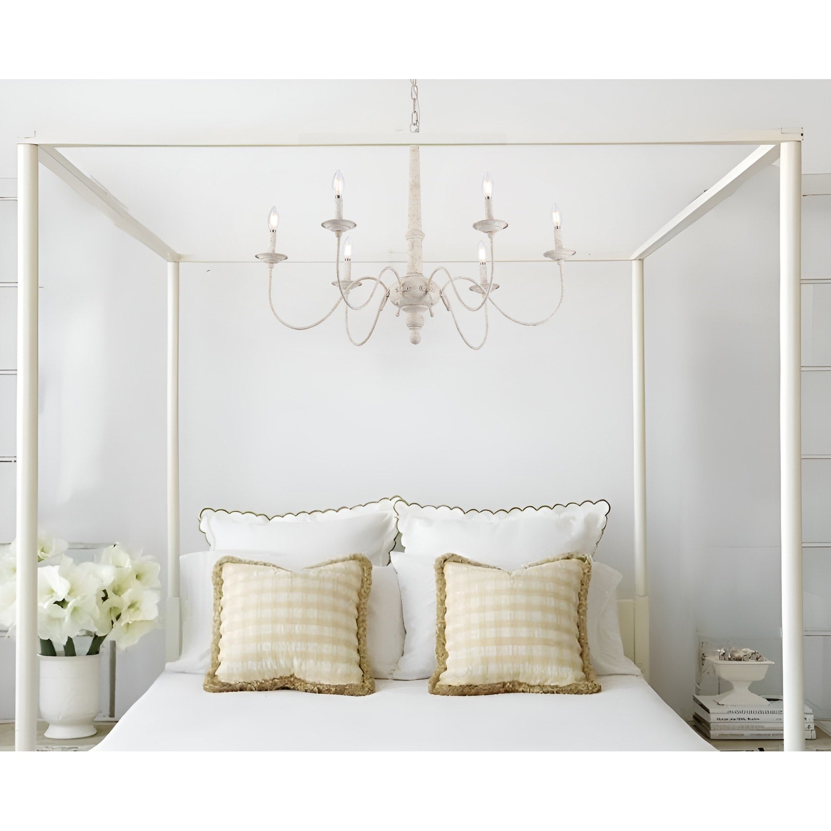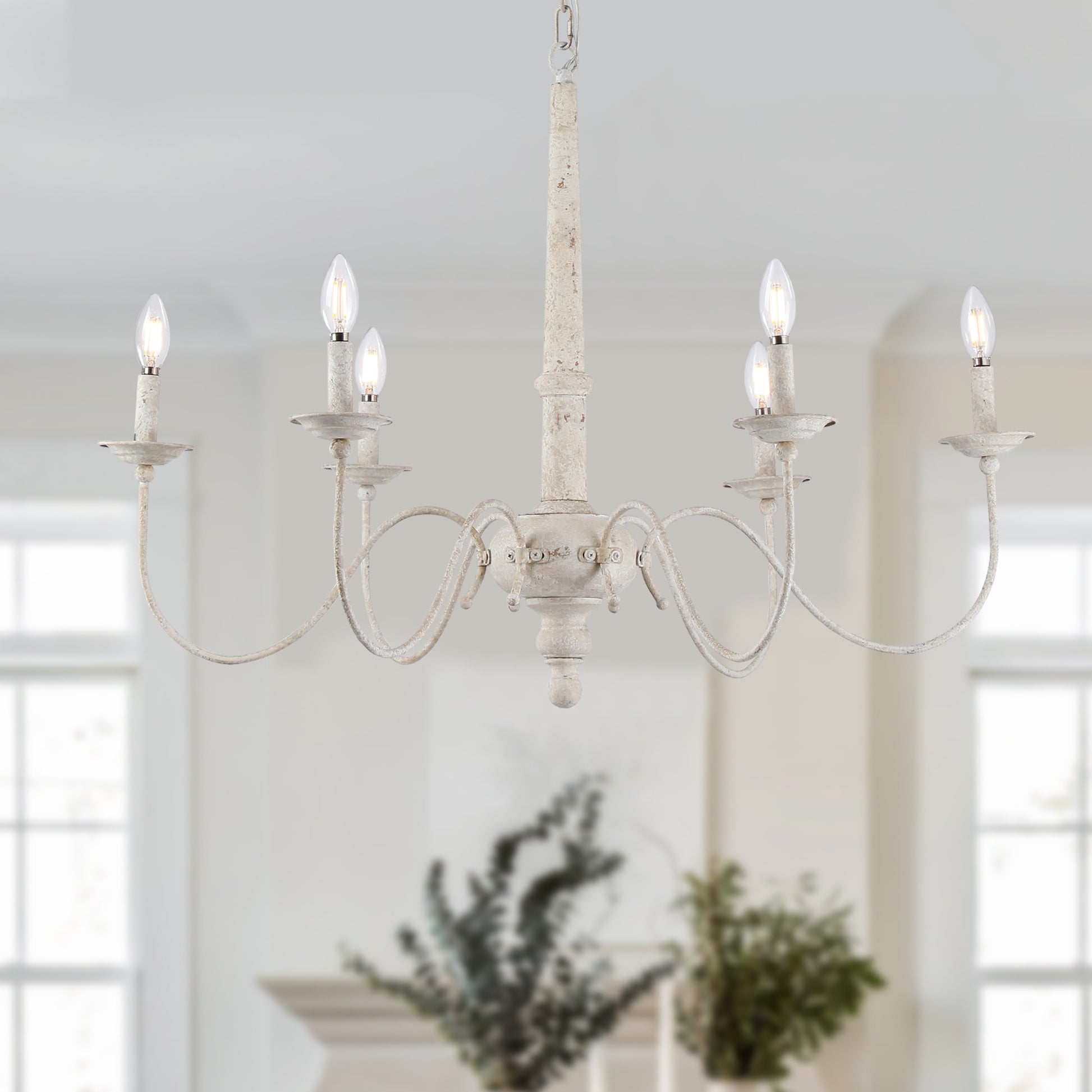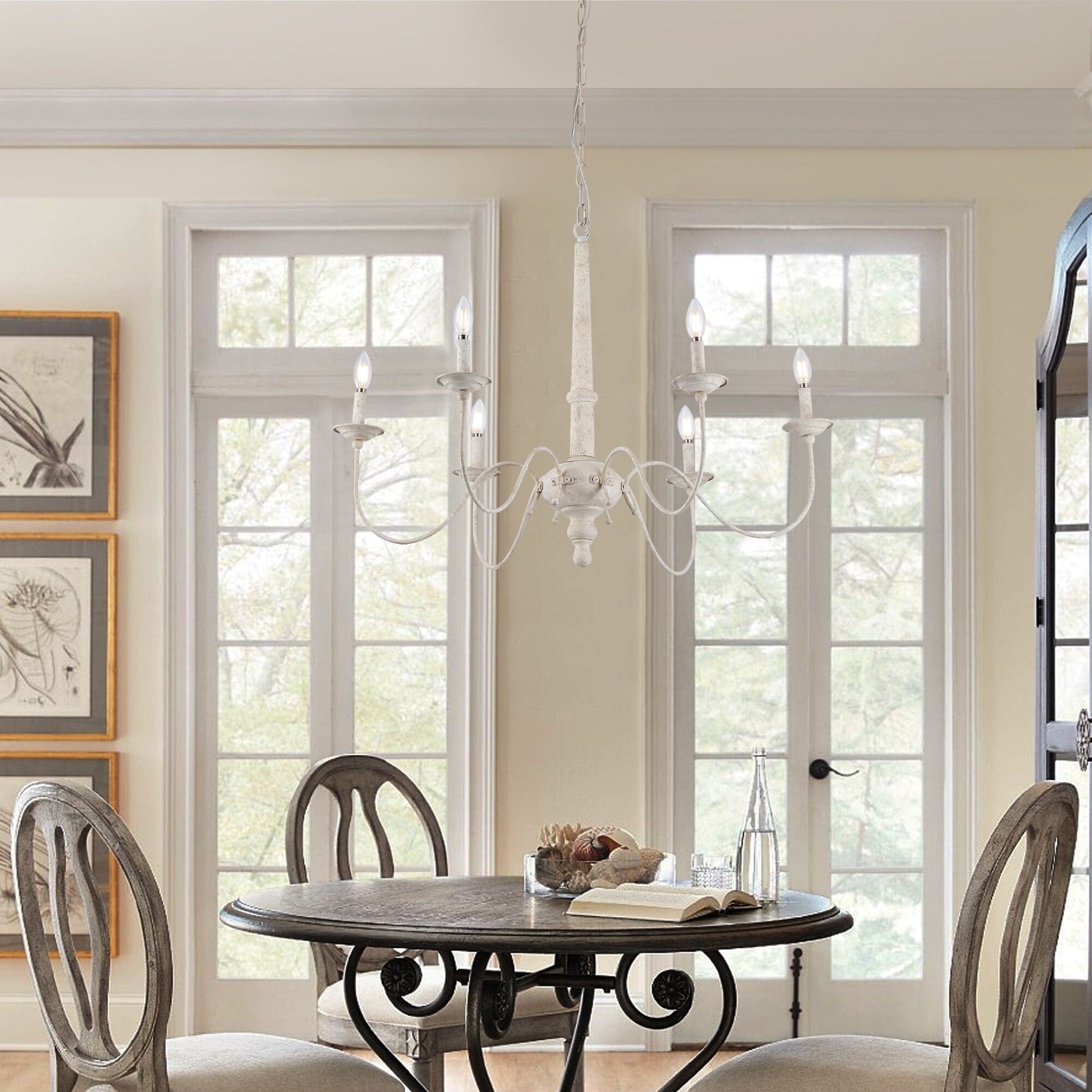 Country Farmhouse Chic: Elevate your decor with the inviting charm of a country farmhouse. This white chandelier brings a touch of rural simplicity that effortlessly complements a range of interior styles.