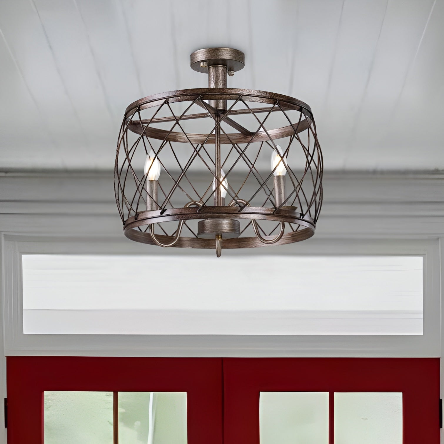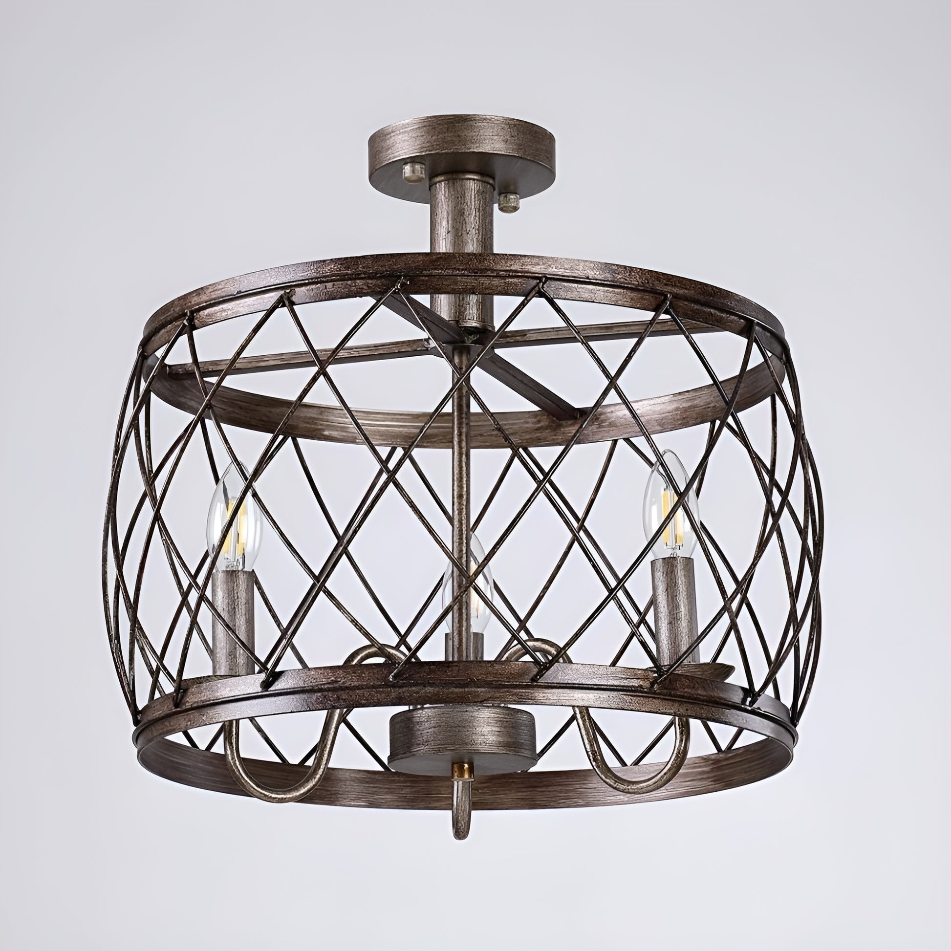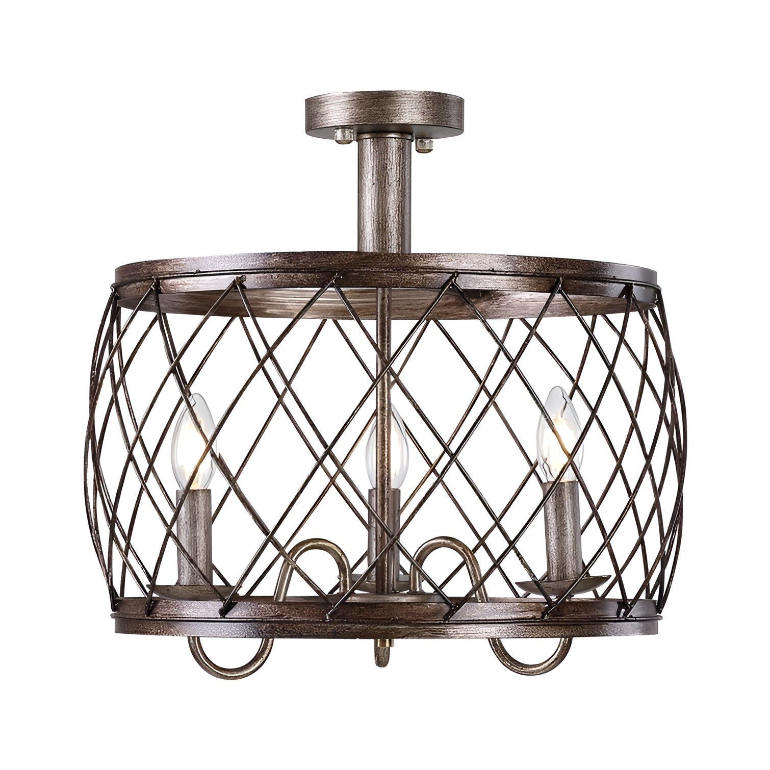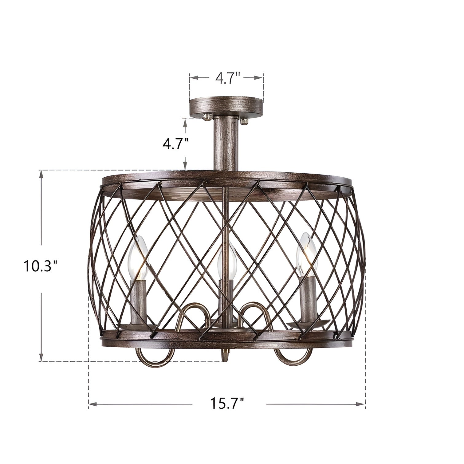 Wine Barrel Metal Mesh Flush Mount, Aged Silver Ceiling Light Chandelier
