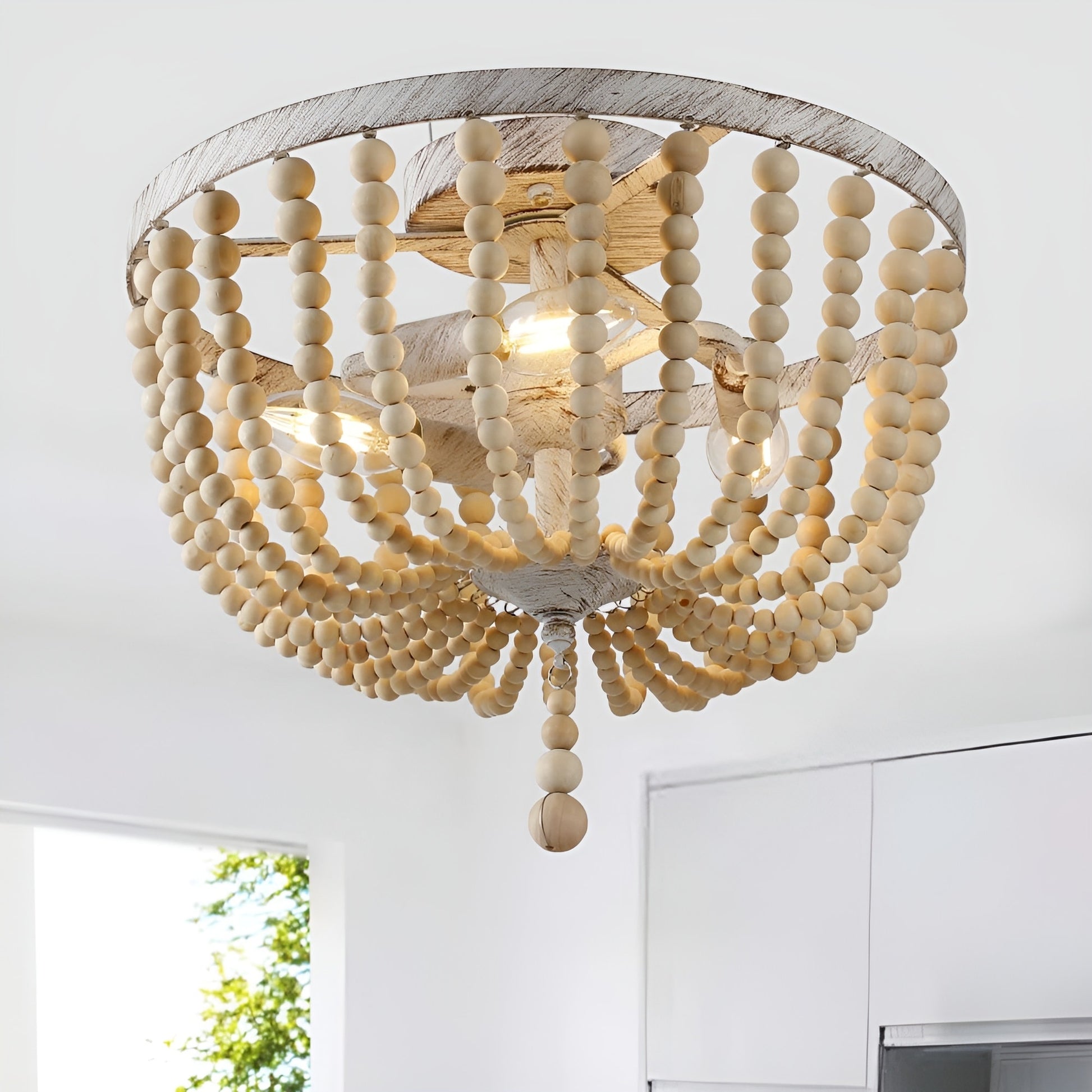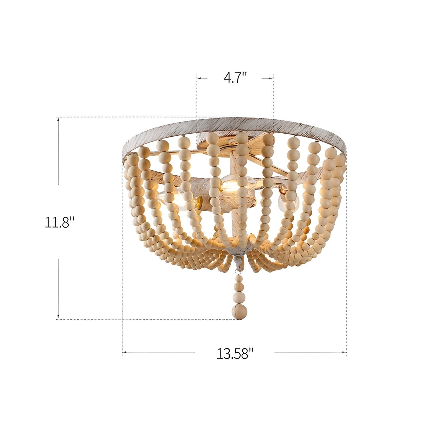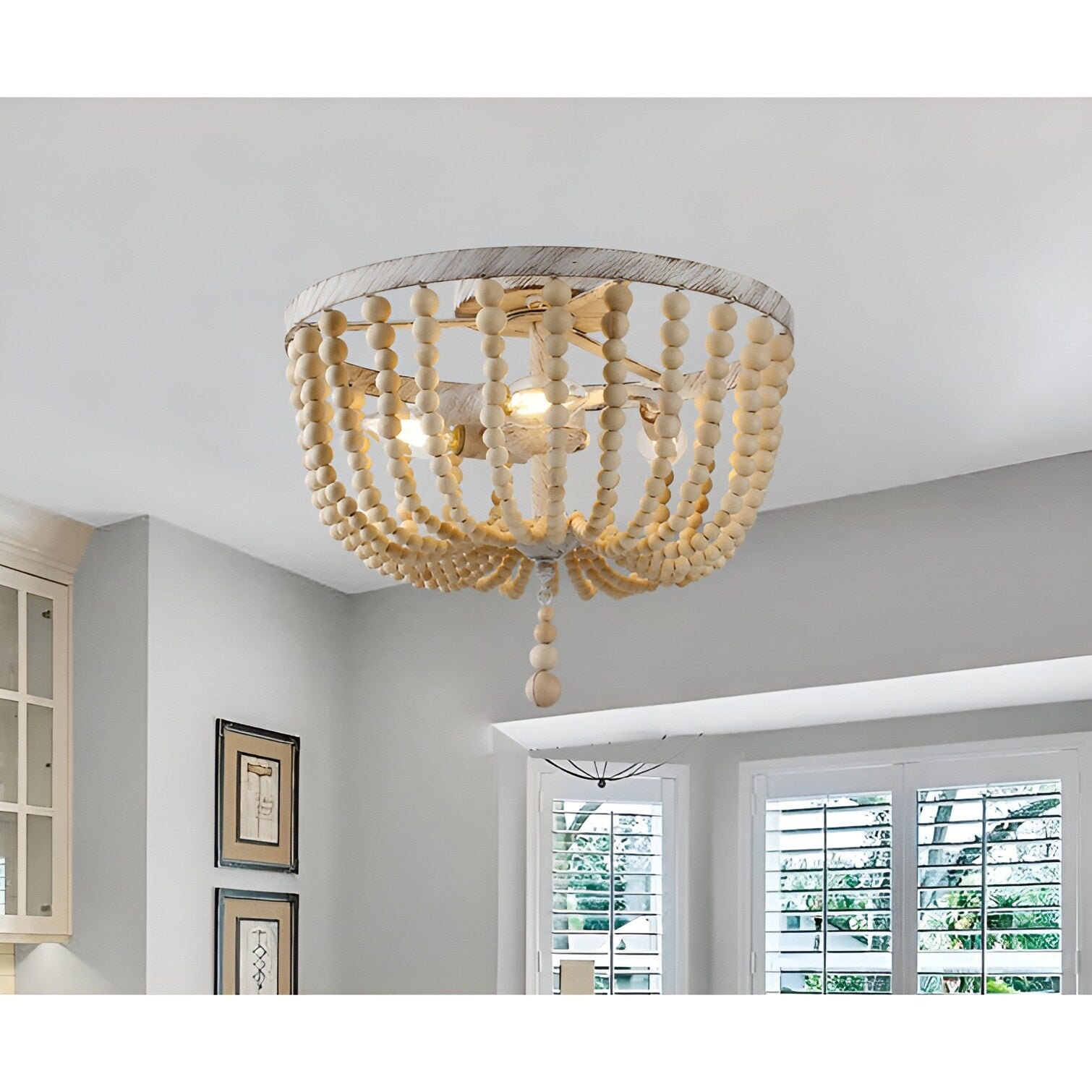 Farmhouse Wood Bead Chandelier - Distressed Cream Metal and Wood Ceiling Light with Classic Elegance