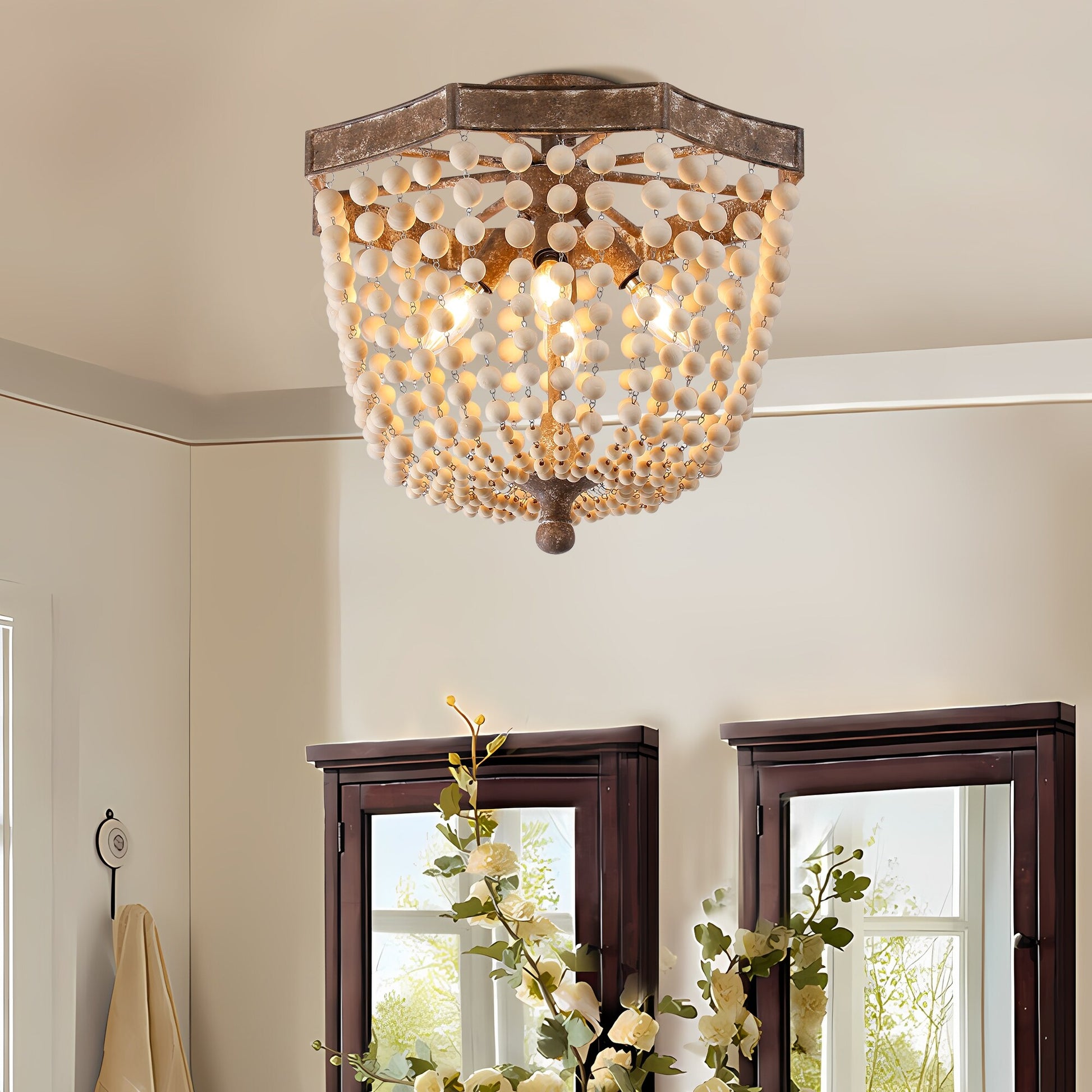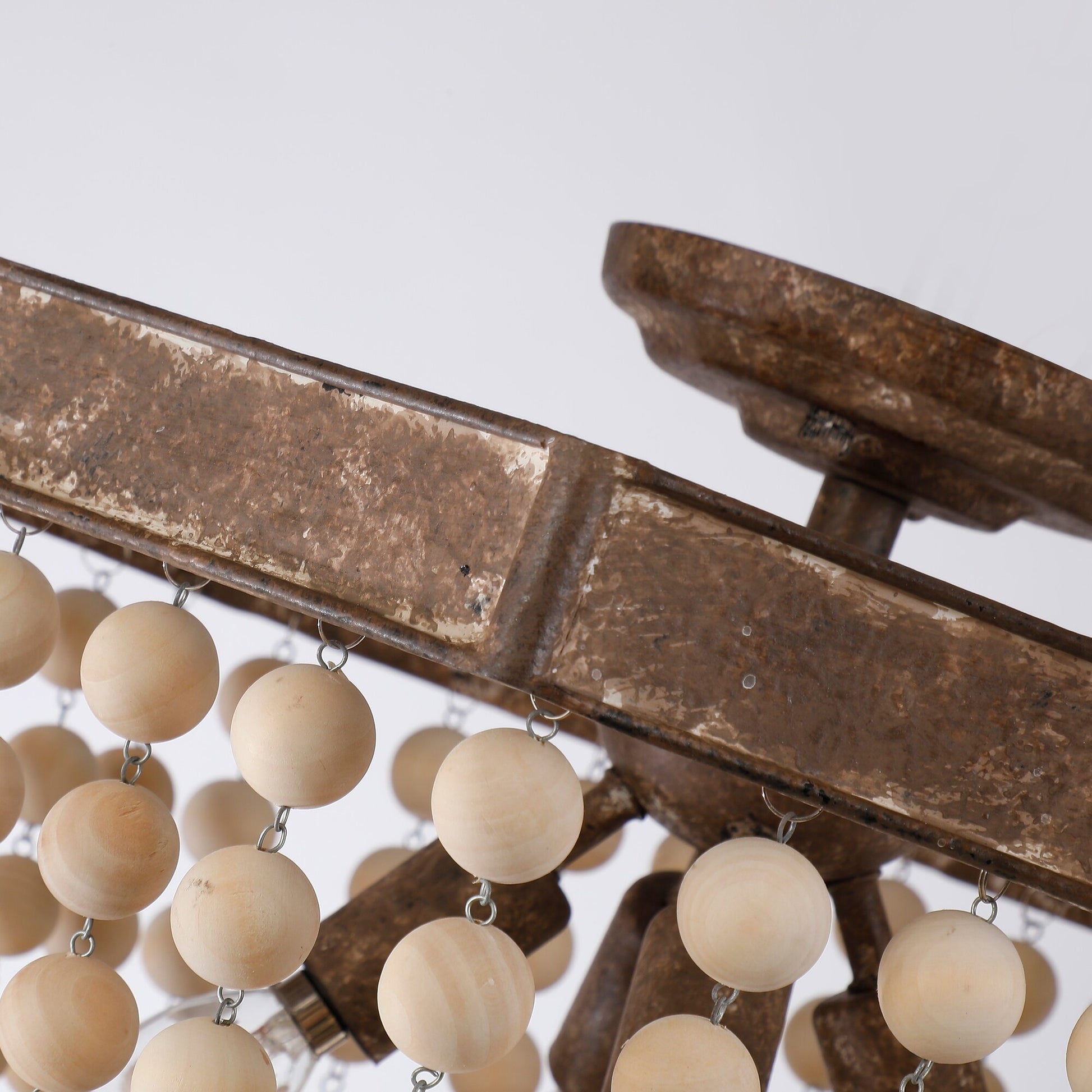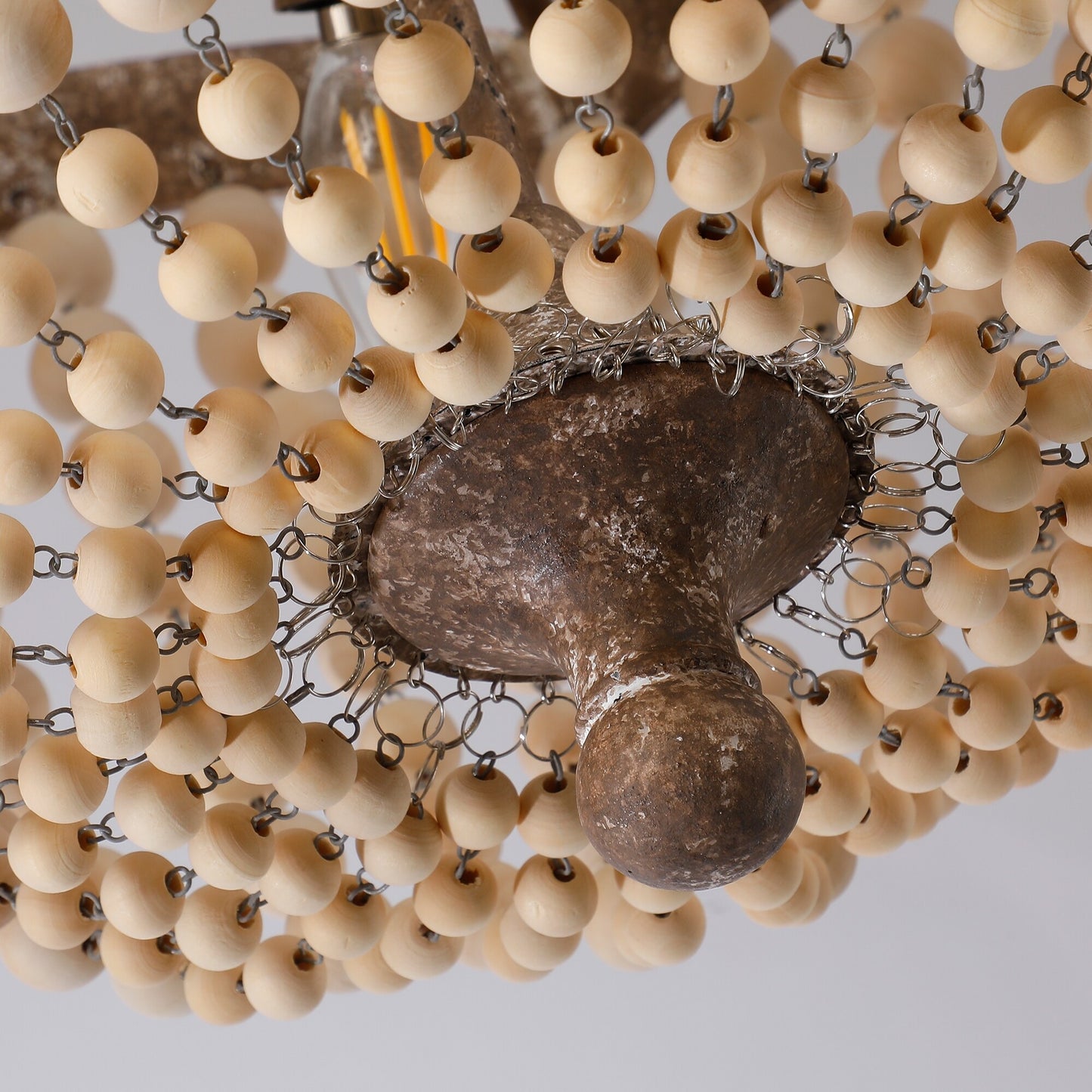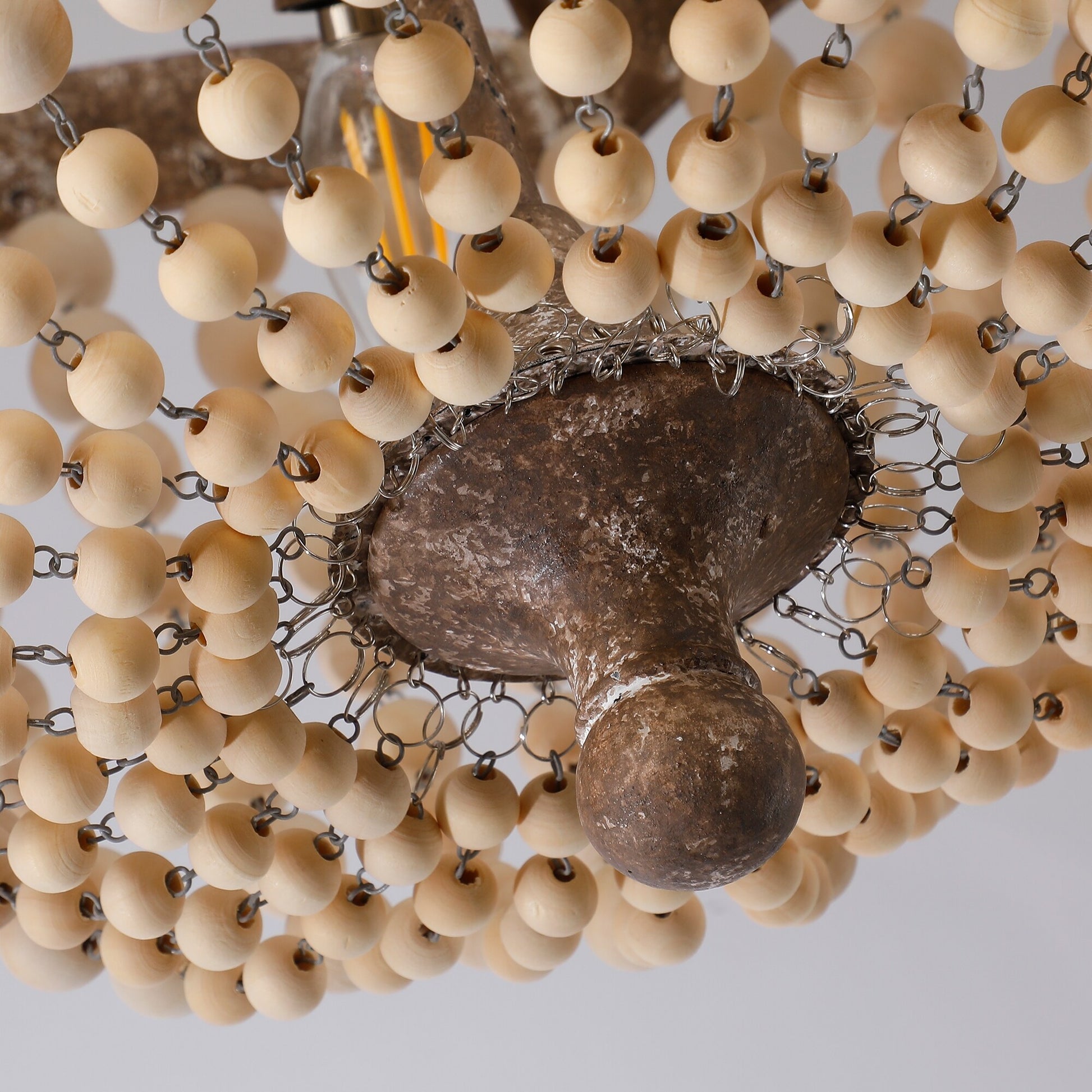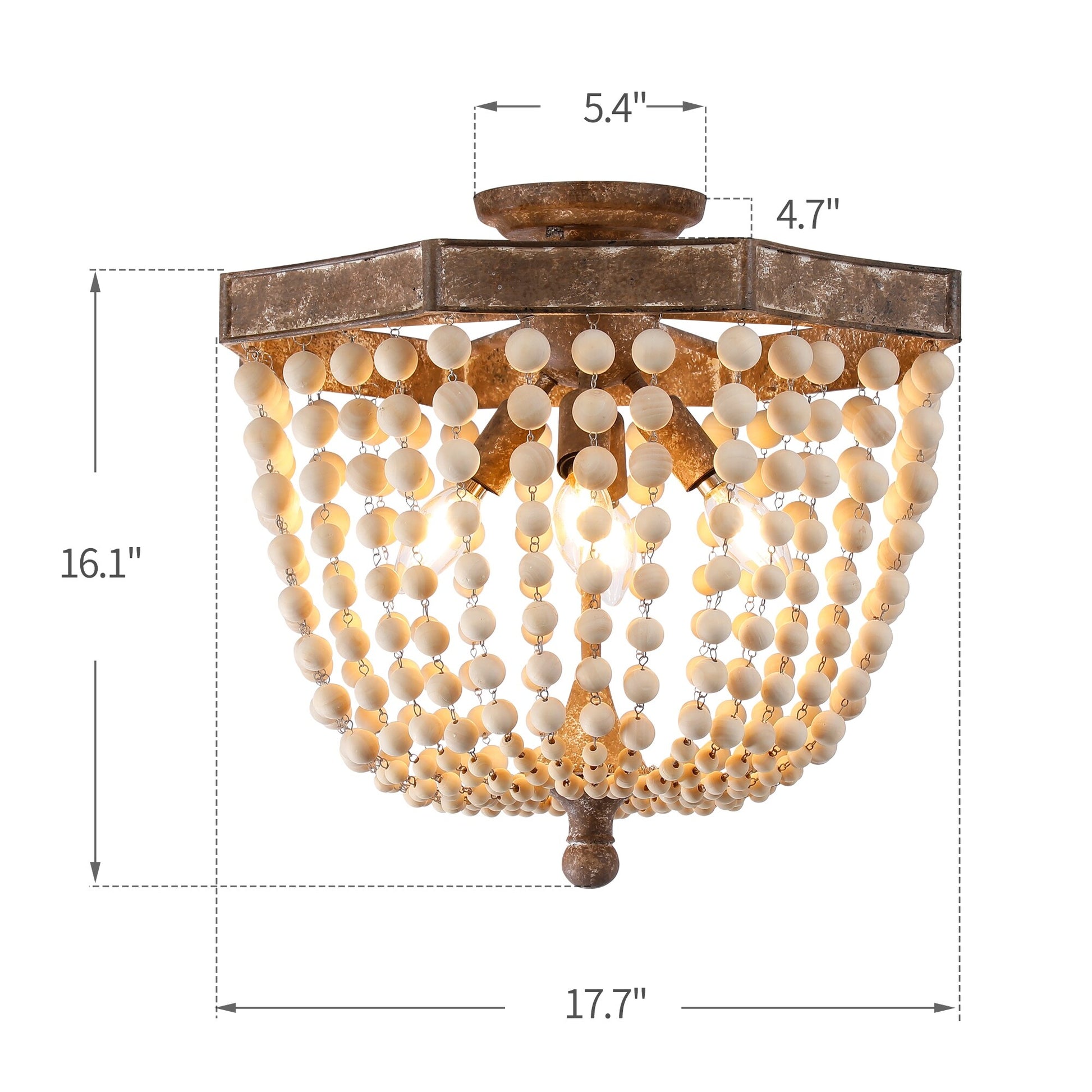 Within the worn frame, a set of four bulbs (not included) creates a warm layer of light that elegantly accents the beads, spreading a cozy ambiance throughout the room. 🌟 Elevate your interior with this unique blend of antique style and modern design, where every curve and bead tells a story of timeless elegance. Illuminate your space with the Chemise Wood Semi Flush Mount Chandelier Ceiling Light and let the antique-inspired charm captivate your home. 💡🌿