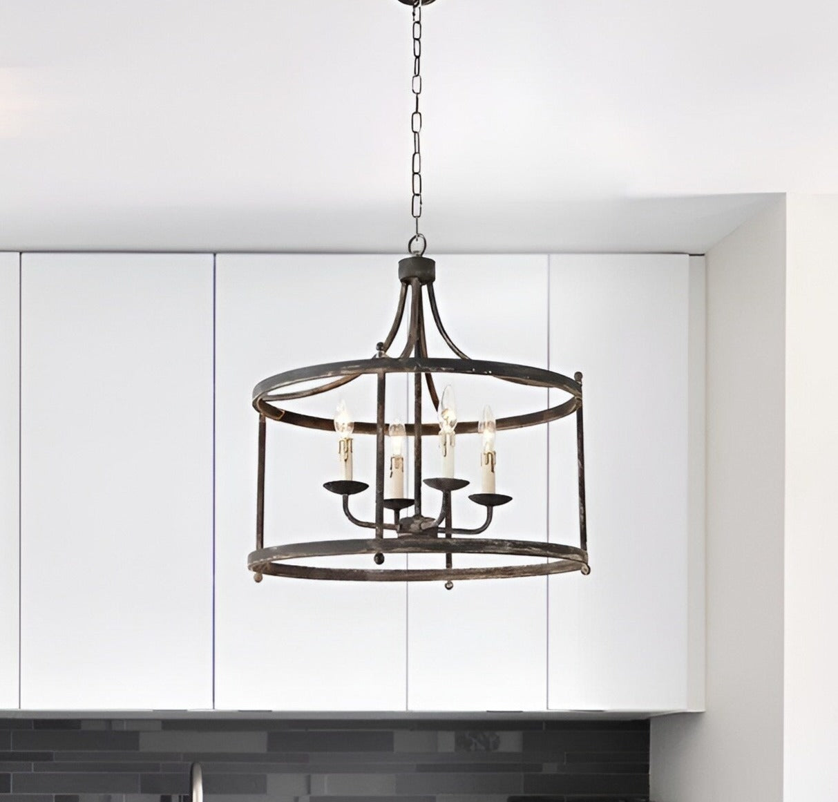 Papken 4-Light, Medieval Antique Style Lantern, Drum Chandelier: Lighting Fixture with Modern Appeal for Home Decor